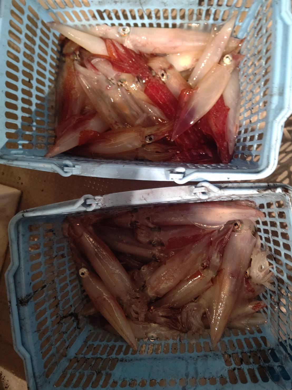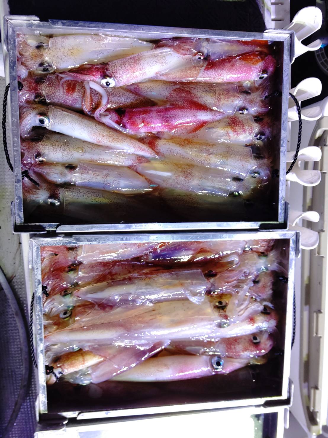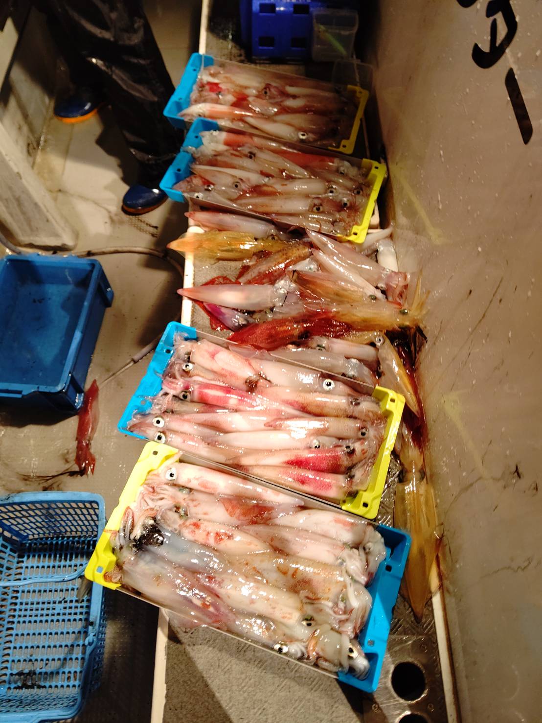毎日、連日満員御礼ありがとうございます(*^^*)毎日思うのが、『昨日の事より今日が大切』です。(←結局毎日が大切っていうことですね笑)毎日、お土産確保出来るのがとても嬉しいです(*^▽^*)8時過ぎから少し活性低くめのスタート!サイズも小ぶりでした。それでも誘って釣る本来のマイカ釣りとあって楽しかったです(^^)d 個人差もありましたがみなさんALLメタルとあって平均してました♪♪そして今日は、イシグロ宮崎さんがお友達とご乗船★★(一緒にいらしたお友達が)メタルデビューとは思えない位上手でした(“⌒∇⌒”)2人で105ハイ!!凄腕でした♪本日は福井美浜米春丸にご乗船下さいまして誠にありがとうございましたm(__)m明日も釣れます様に☆★