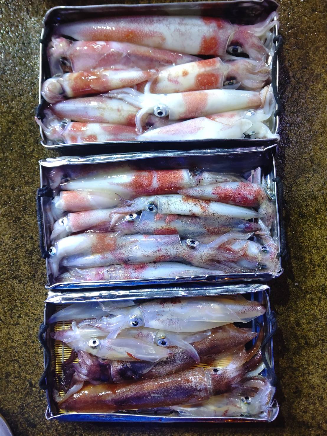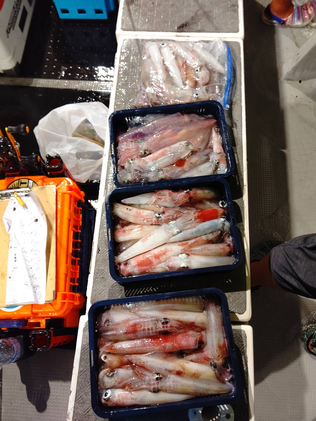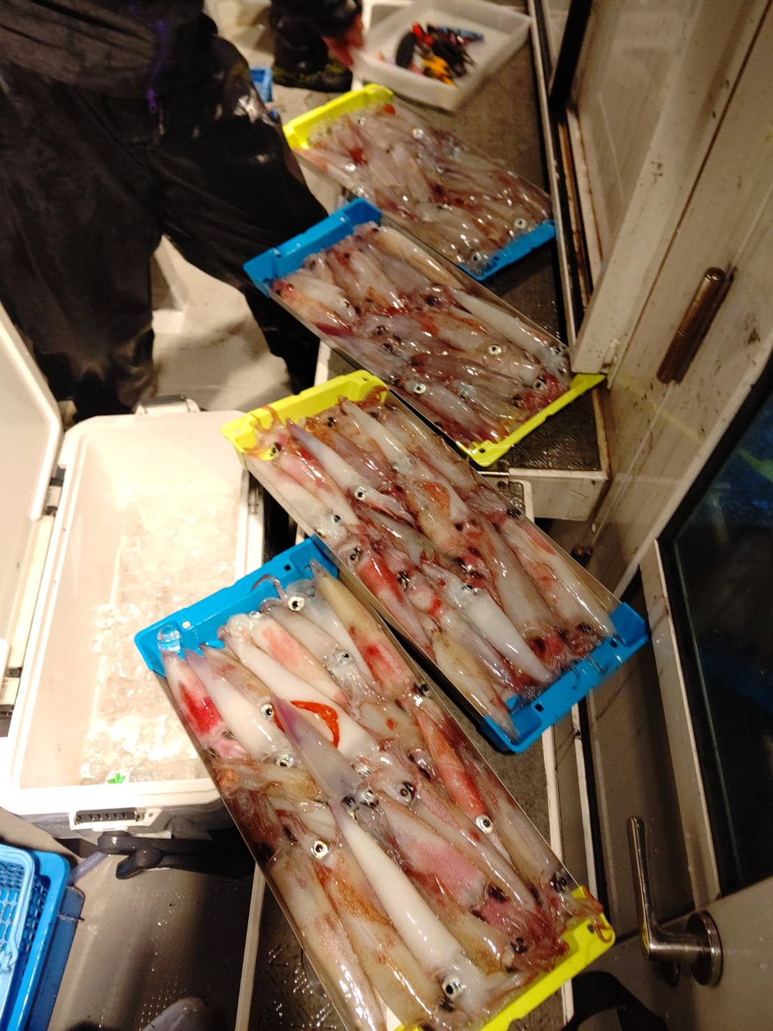 毎日、連日満員御礼ありがとうございます(*^^*)毎日思うのが、『昨日の事より今日が大切』です。(←結局毎日が大切っていうことですね笑)毎日、お土産確保出来るのがとても嬉しいです(*^▽^*)8時過ぎから少し活性低くめのスタート!サイズも小ぶりでした。それでも誘って釣る本来のマイカ釣りとあって楽しかったです(^^)d 個人差もありましたがみなさんALLメタルとあって平均してました♪♪そして今日は、イシグロ宮崎さんがお友達とご乗船★★(一緒にいらしたお友達が)メタルデビューとは思えない位上手でした(“⌒∇⌒”)2人で105ハイ!!凄腕でした♪本日は福井美浜米春丸にご乗船下さいまして誠にありがとうございましたm(__)m明日も釣れます様に☆★