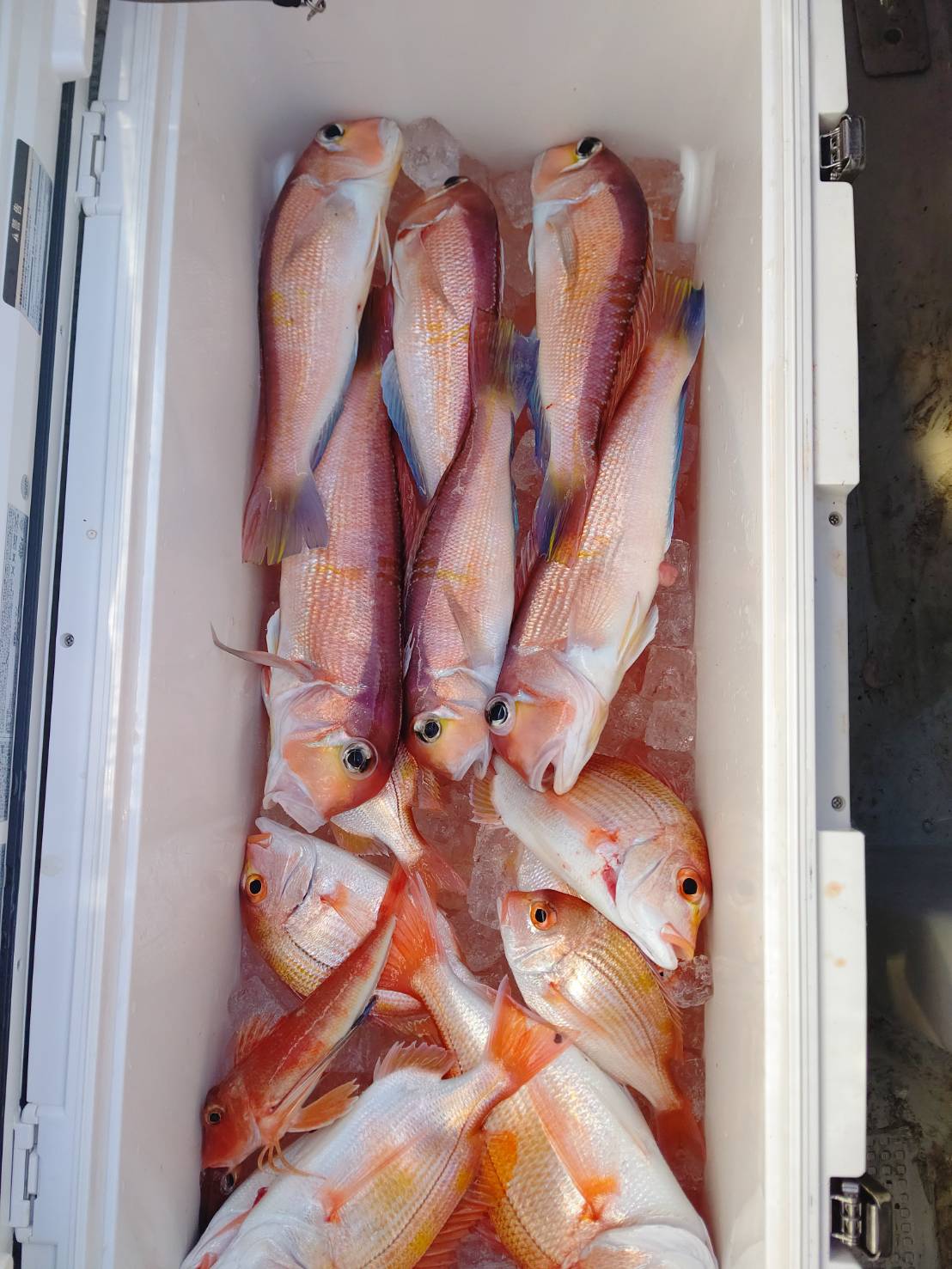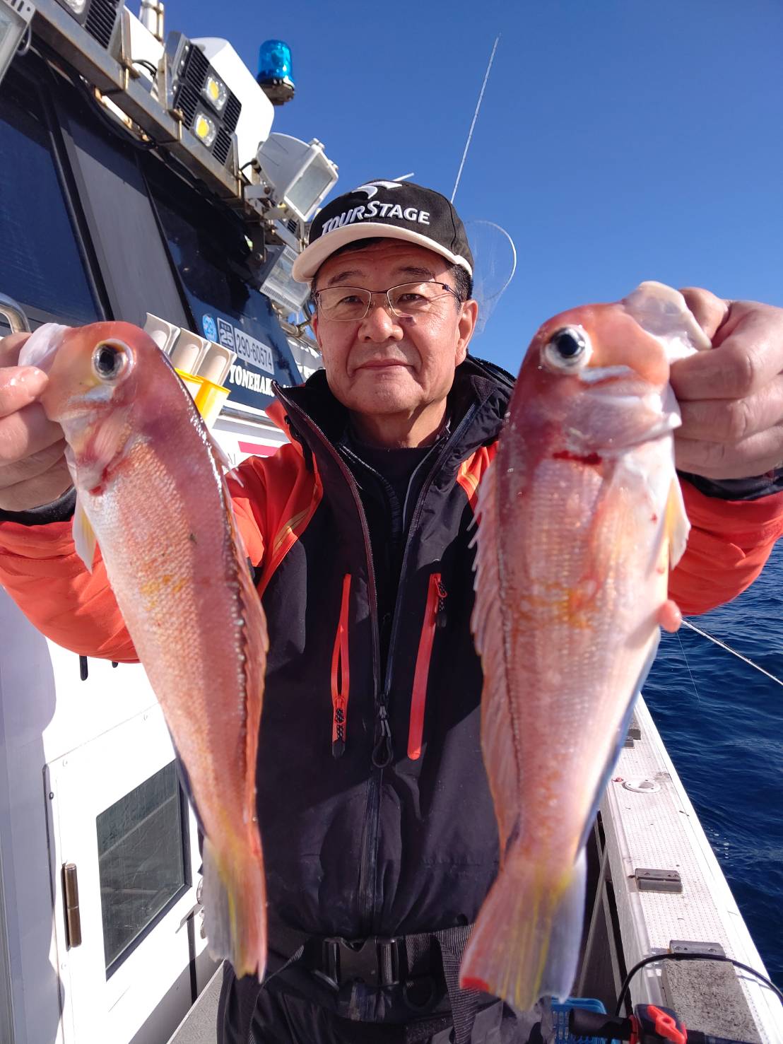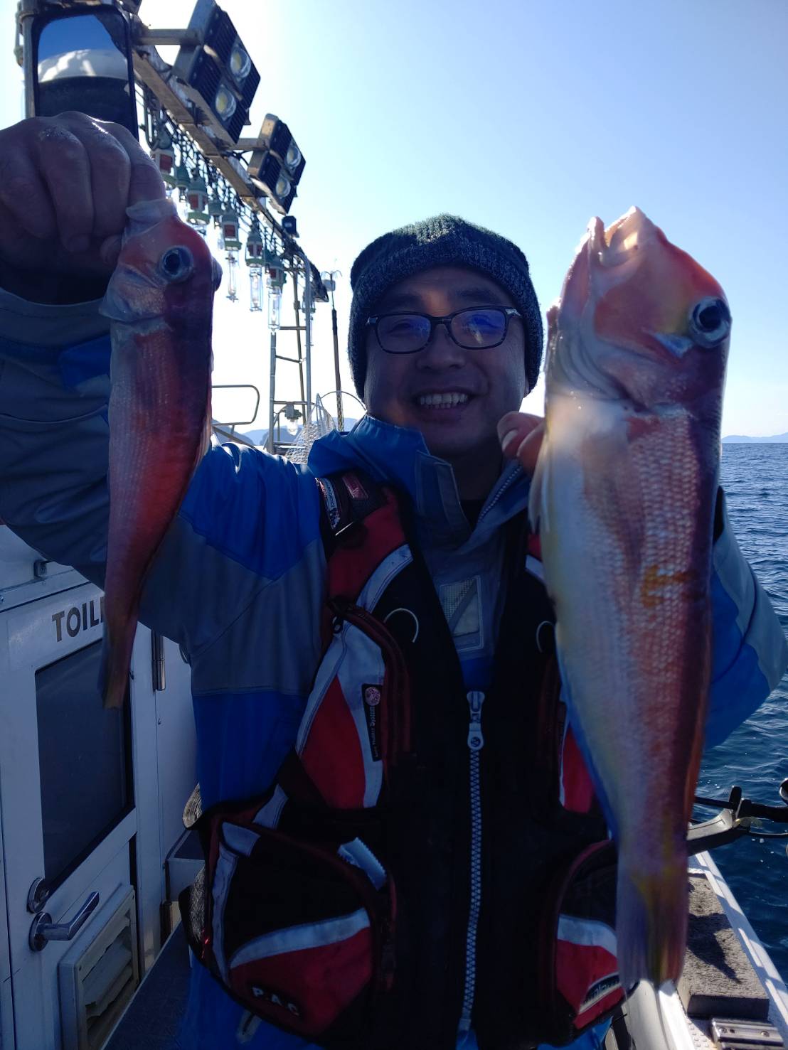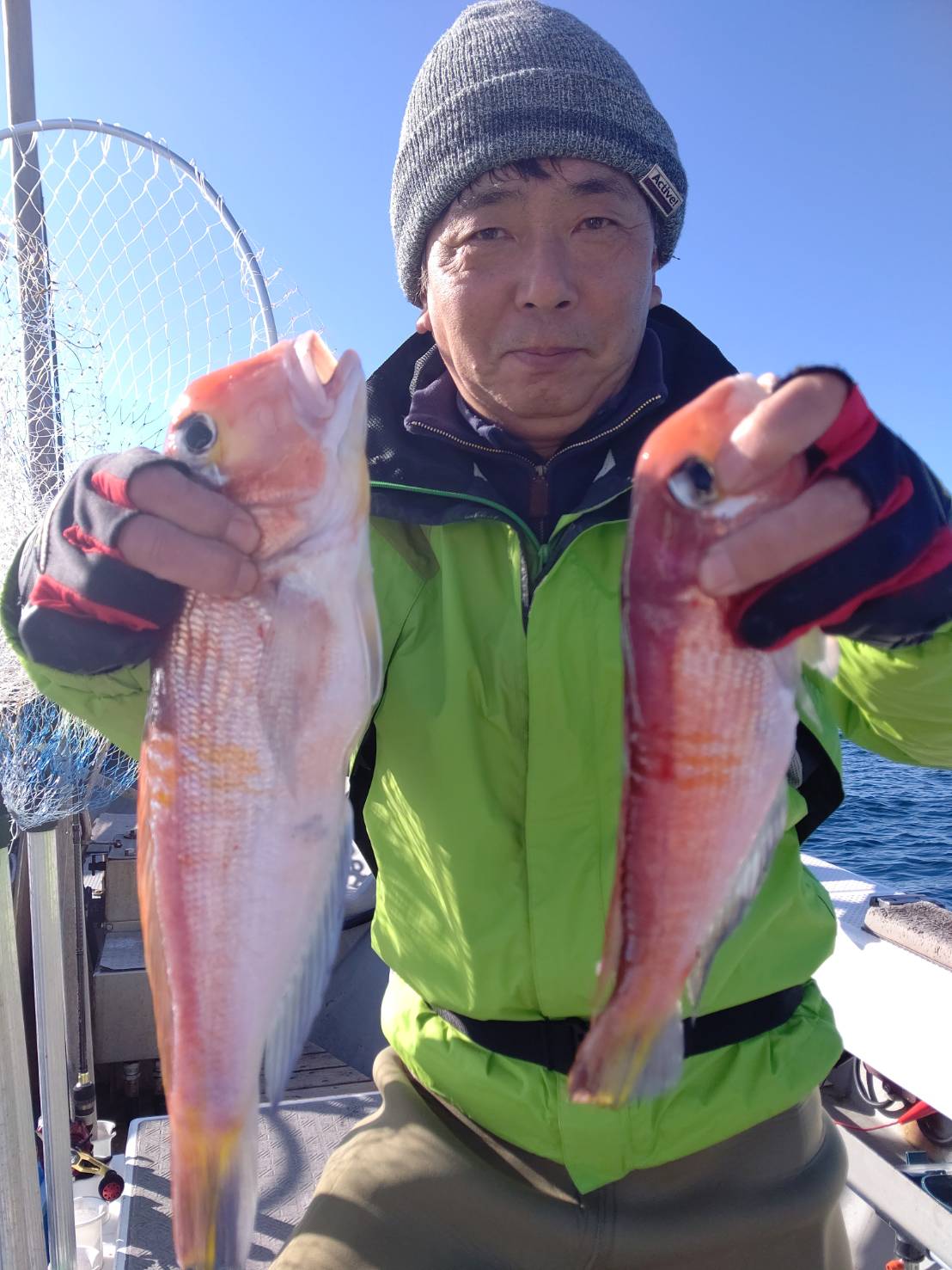 初釣り底物便は正月らしく赤一色の大漁でした(σ≧▽≦)σウネリのある中、みなさん手持ちで頑張ってくれました♪アマダイ4、5匹GETされたお客様がほとんどで、船中59匹ってすごいのに、アマダイダントツ竿頭は、前川さん14匹!と、さらに凄かったです。もぅ驚きです(笑)ほんと釣れて良かったです♪米春丸にご乗船下さいまして誠にありがとうございましたm(__)m
