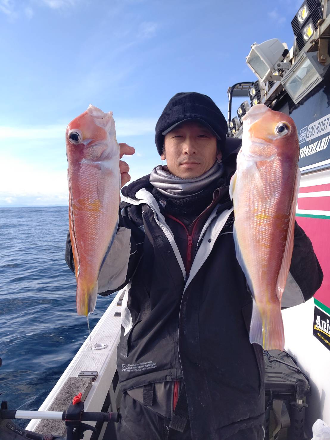 今日は前半底潮がないせいもあったのか、喰い悪すぎでした(。>д<)それでも後半ポツポツとアマダイが釣れました♪30cm級のいつもより少し小さめでしたが、でも、釣れて良かったです!サビキで狙われたお客様だけ顔見れずでした。やっぱり、天秤の方がいいのかな?!でも、最終的にいい感じの釣果になり、良かったです☆福井美浜米春丸(よねはるまる)にご乗船下さいまして誠にありがとうございましたm(__)mこの時期、海もちょこちょこ荒れますが、天気予報をみながら、ぜひ凪のいい日には高級魚アマダイをはじめ、底物釣りに福井美浜米春丸(よねはるまる)に来て下さいませ(*^^*)