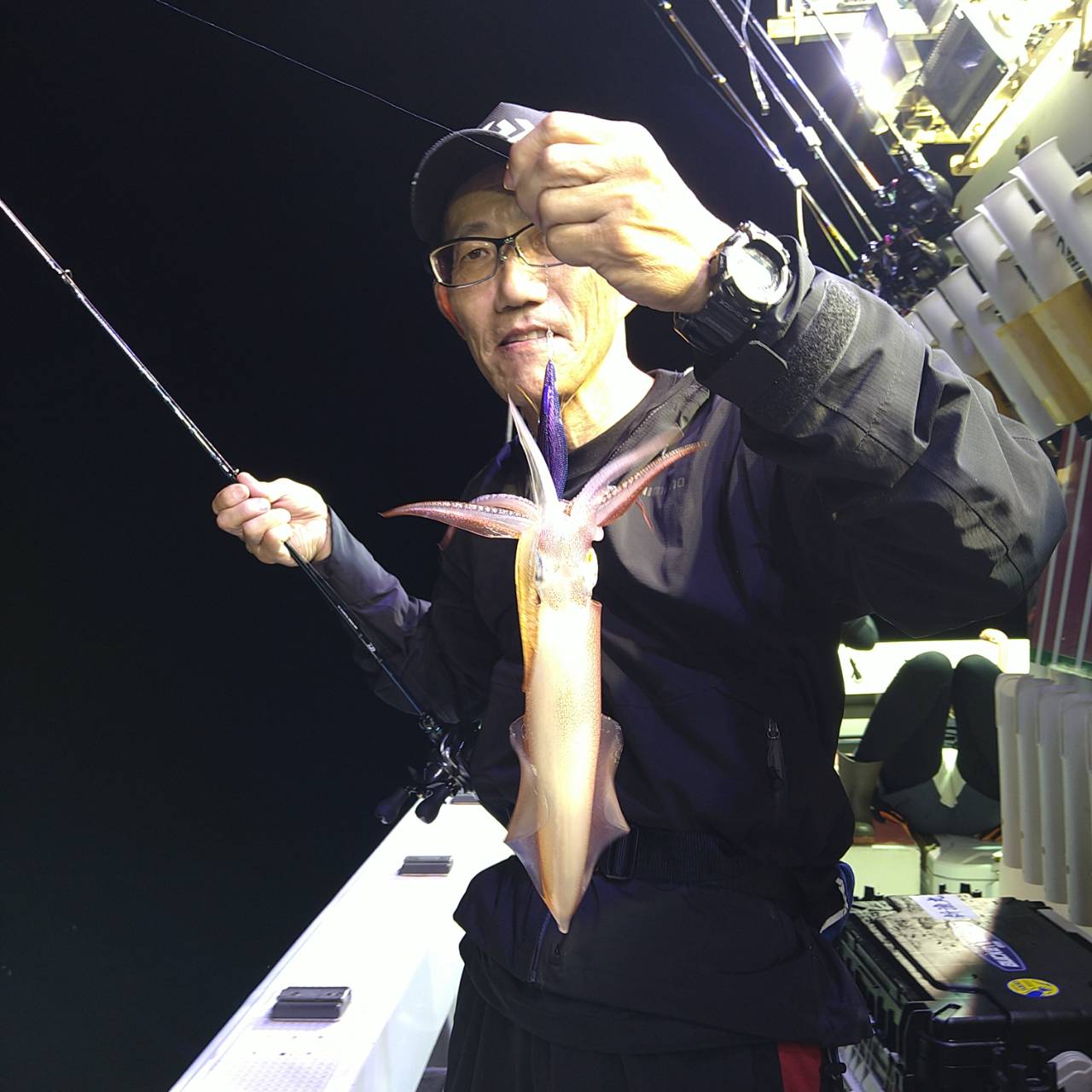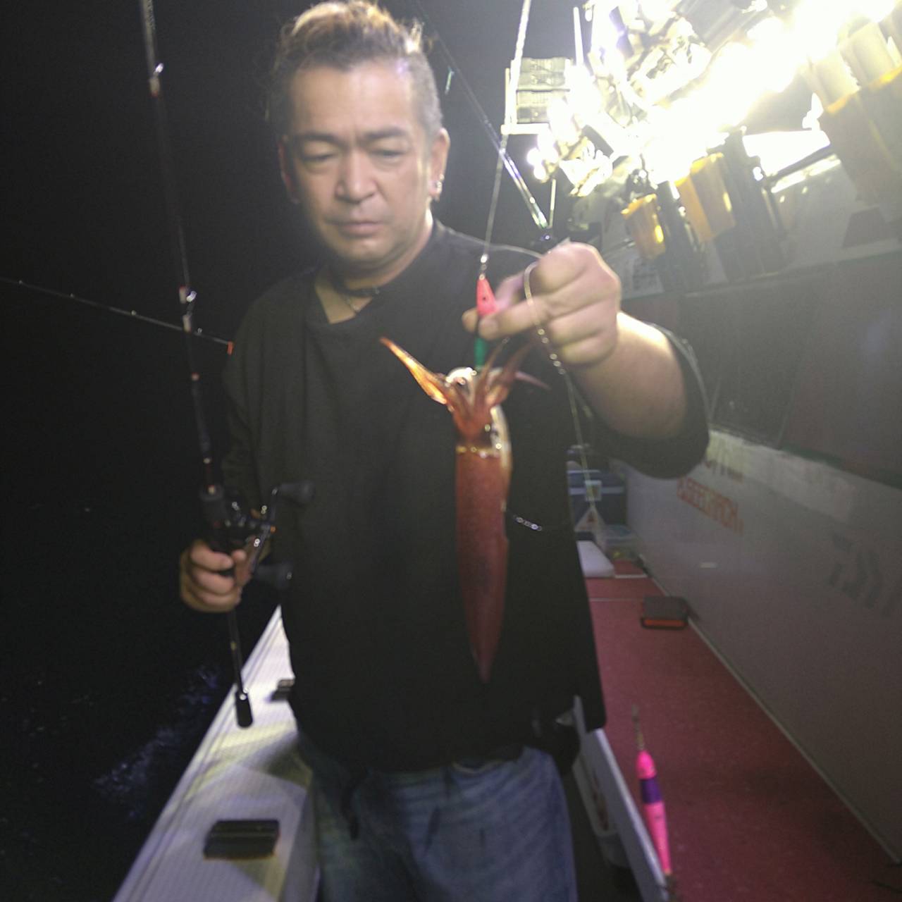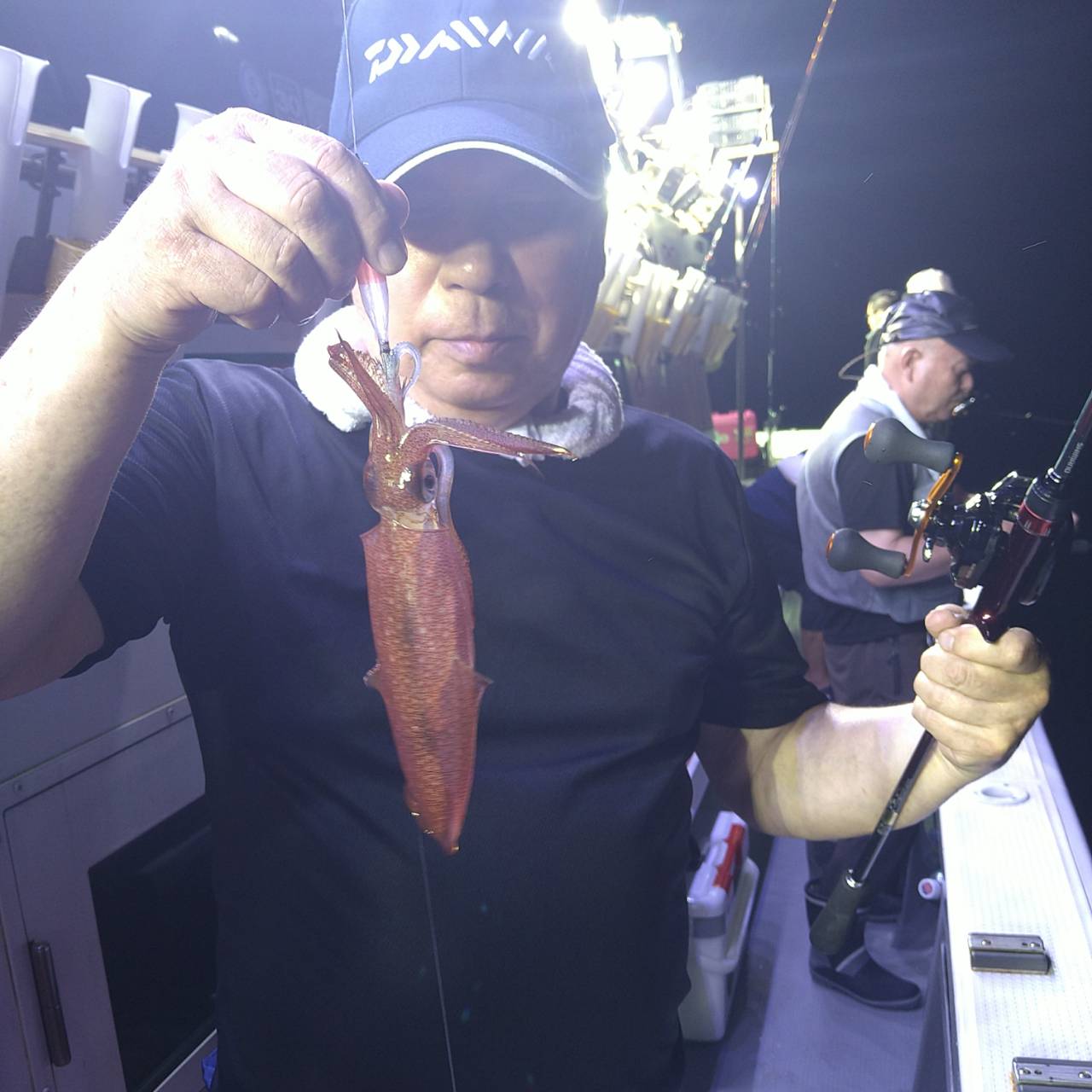 今日は思ったより凪良かったです。少し潮ありましたがイカリでやりました。点灯後、浅ダナでポツンポツンと釣れるのですが、活性は弱かったです。サイズも小ぶりが目立ちました。後半タナもバラバラでしたが、大型〜中型混じりで釣れました(*^^*)10パイ超え11名、竿頭マイカ15のスルメ4の計19ハイでした★チャンピオンステッカーGETおめでとうございます( /^ω^)/♪♪本日は福井県美浜米春丸にご乗船下さいまして誠にありがとうございましたm(_ _)m