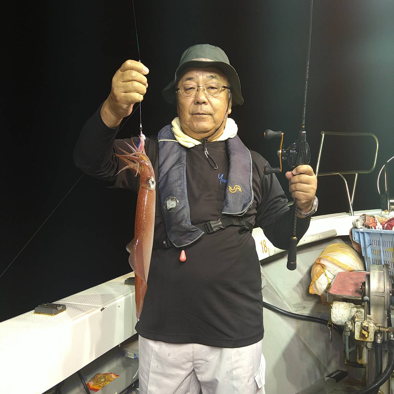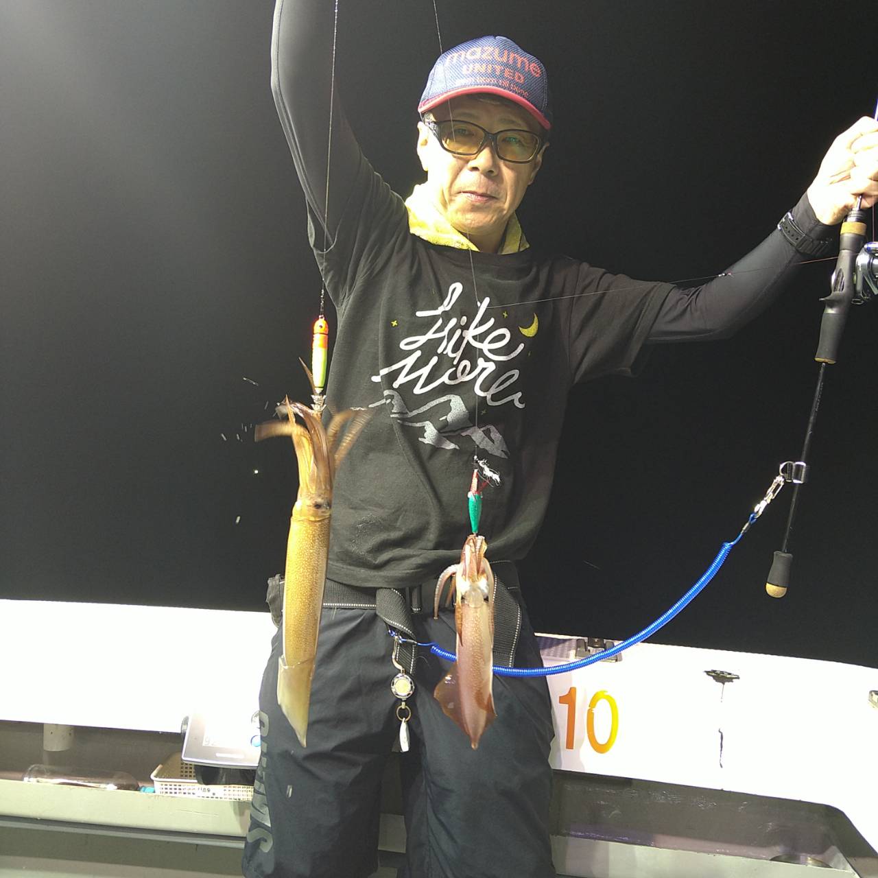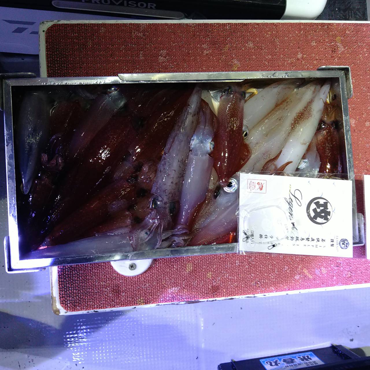 今日も底潮だけが少しありました。点灯してから少し待ち時間、中層であたりました。クセのある釣れ方で個人差が出ました。上ダナであたる時もありましたが後半あたりが弱くなりました。10パイ超え6名の竿頭19ハイでした★チャンピオンステッカーGETおめでとうございます(*^ω^)ノ本日は、福井県美浜米春丸にご乗船下さいまして誠にありがとうございましたm(_ _)m