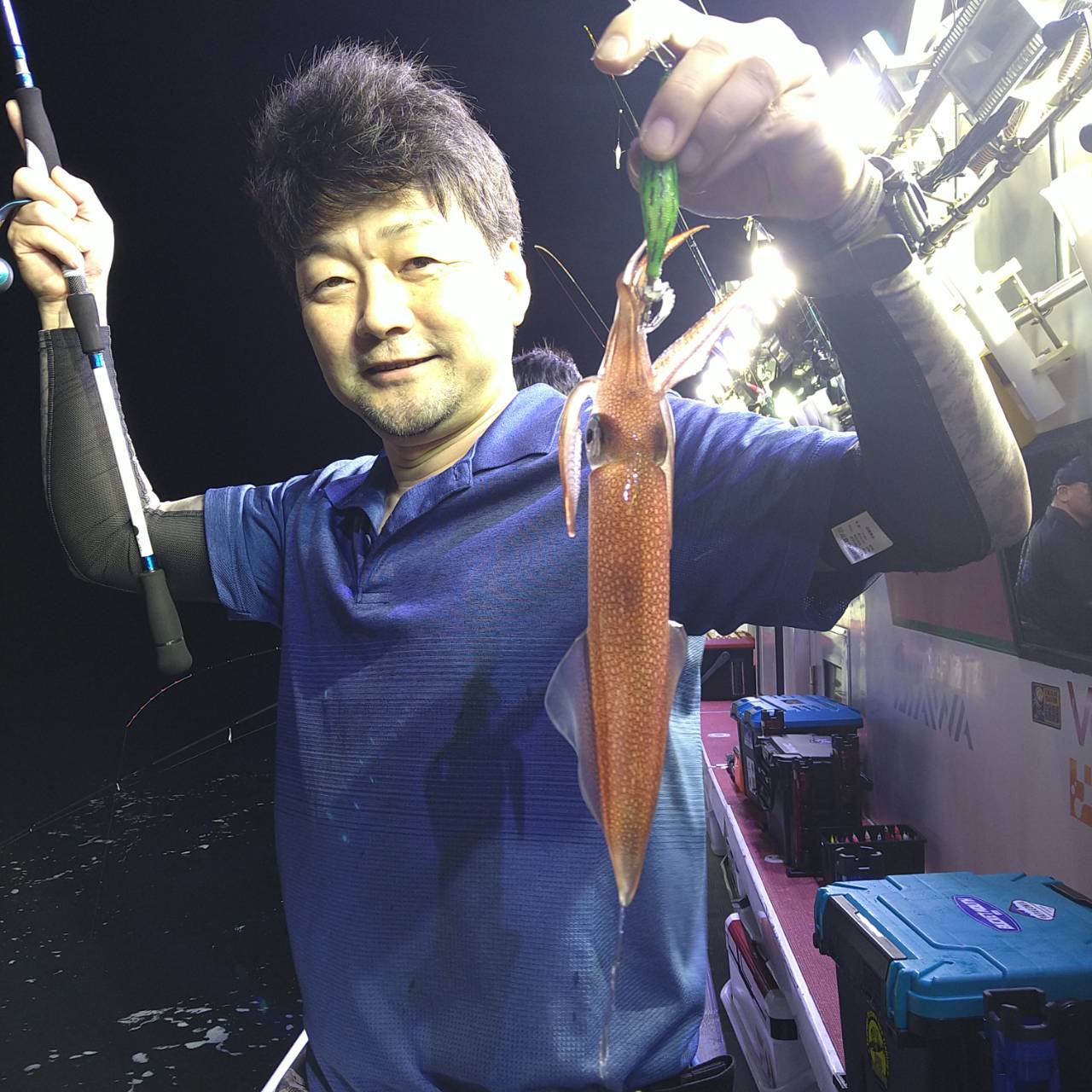 今日は少し波ありでしたが、潮緩かったです。点灯してから待ち時間ポツンポツンと釣れました★あたると何人かヒットする場面もありました(^ー^)後半やはり弱くなりましたが、減光してからポツンポツンとあたってくれました(*´▽`*)10パイ超え10名と竿頭マイカ21パイ、スルメ1パイの計22ハイでした。チャンピオンステッカーGETおめでとうございます(*^ω^)ノ本日は、福井県美浜米春丸にご乗船下さいまして誠にありがとうございましたm(_ _)m