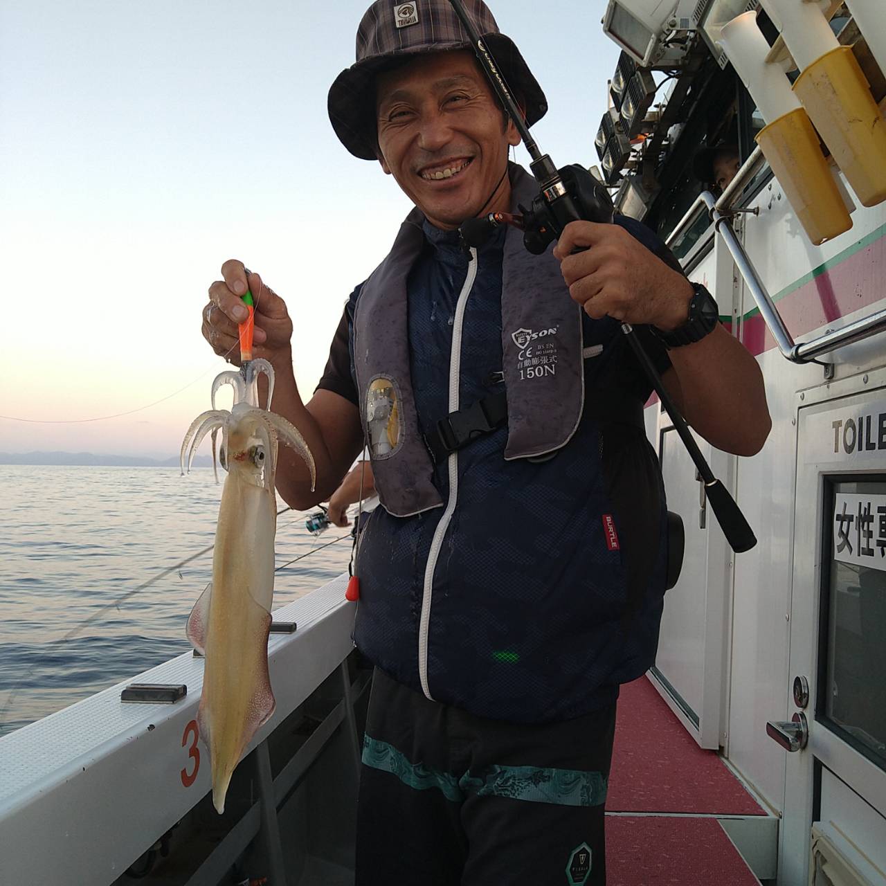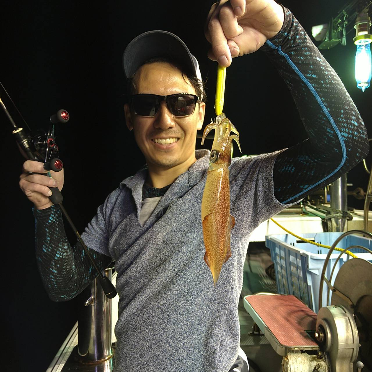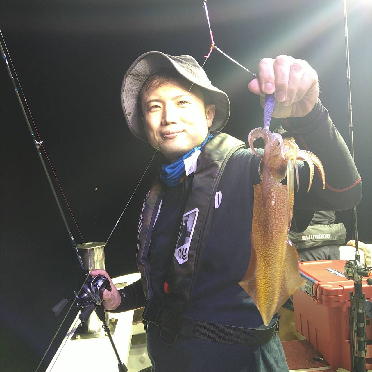 今日は潮速かったですね。パラシュートでやりました。点灯してからあたりが渋く、よく外れてました。でも、良型もけっこう混じってくれたのが良かったです(^o^)テクニカルな釣りでしたが竿頭22ハイでした。チャンピオンステッカーGETおめでとうございます( /^ω^)/♪♪本日は福井県美浜米春丸にご乗船下さいまして誠にありがとうございましたm(_ _)m 毎日暑いので、米春丸では 冷えてるお茶か、水をお一人様1本プレゼントさせて頂いております★水分補給しながら、マイカ釣り楽しんで下さいね♪