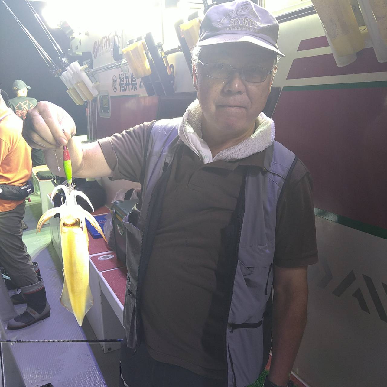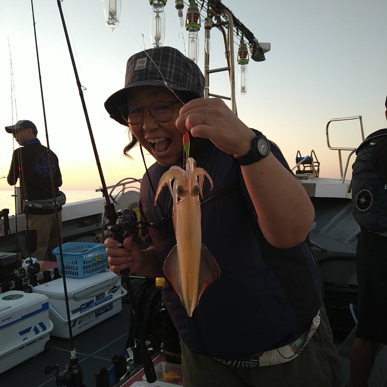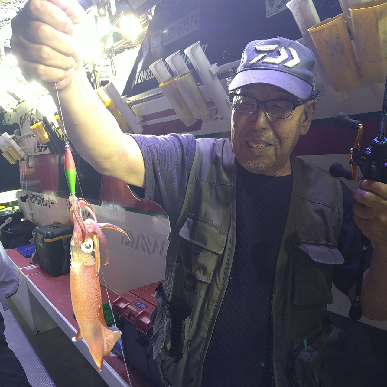 今日は潮速かったですね。パラシュートでやりました。点灯してからあたりが渋く、よく外れてました。でも、良型もけっこう混じってくれたのが良かったです(^o^)テクニカルな釣りでしたが竿頭22ハイでした。チャンピオンステッカーGETおめでとうございます( /^ω^)/♪♪本日は福井県美浜米春丸にご乗船下さいまして誠にありがとうございましたm(_ _)m 毎日暑いので、米春丸では 冷えてるお茶か、水をお一人様1本プレゼントさせて頂いております★水分補給しながら、マイカ釣り楽しんで下さいね♪