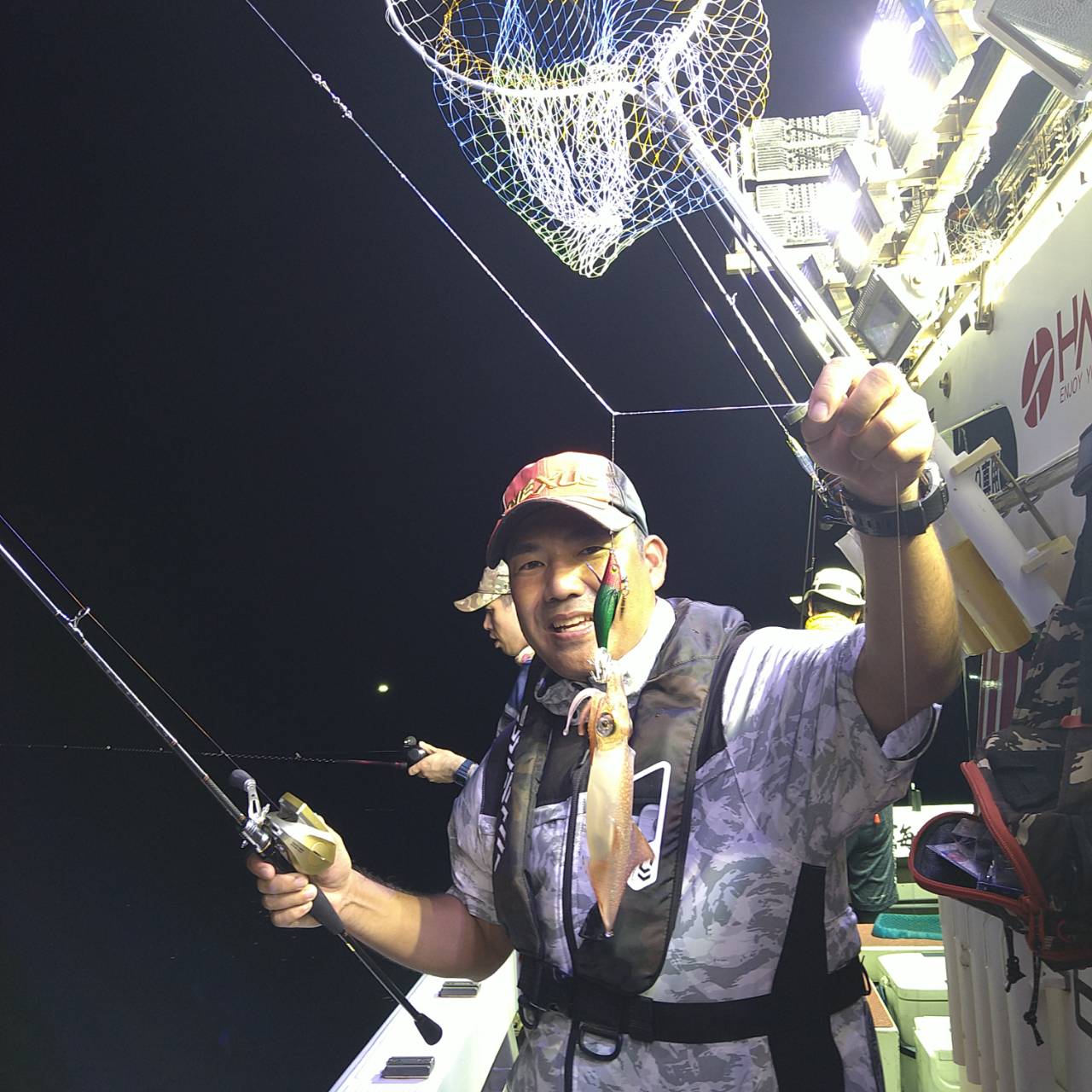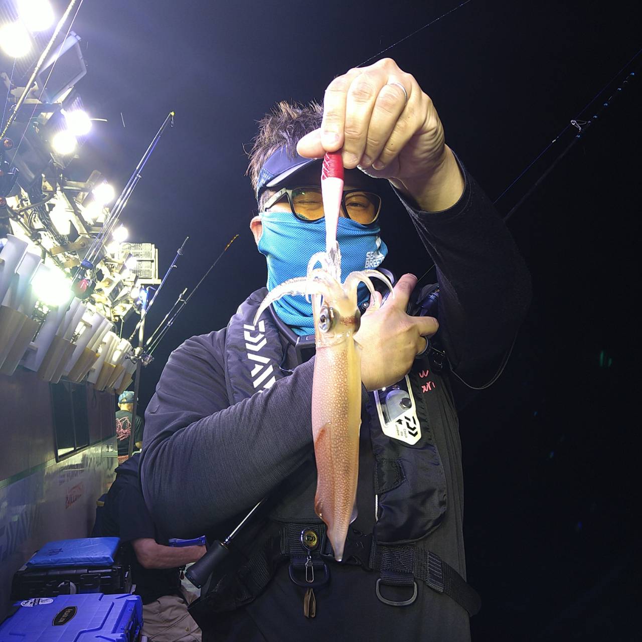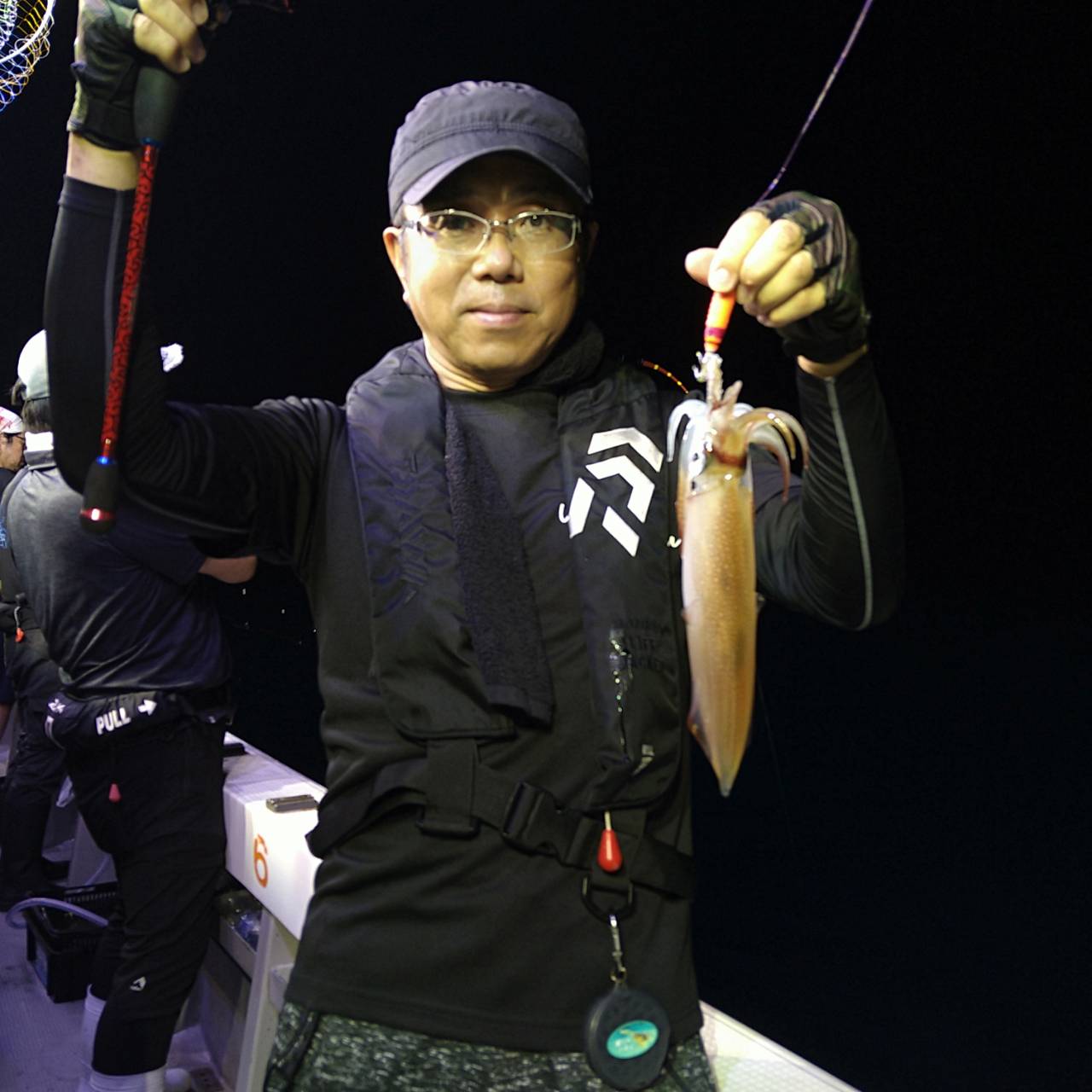 今日もけっこう潮ありました。パラシュートでの釣りとなりました。点灯してからポツンポツンと釣れました♪間があきましたがポツンポツンと釣れました(*^^*)後半どうした事かあたりが遠く超単発でした。最後まで活性上がらずでした。竿頭14ハイとテクニカルでした。チャンピオンステッカーGETおめでとうございます( /^ω^)/♪♪本日は福井県美浜米春丸にご乗船下さいまして、ありがとうございましたm(_ _)m