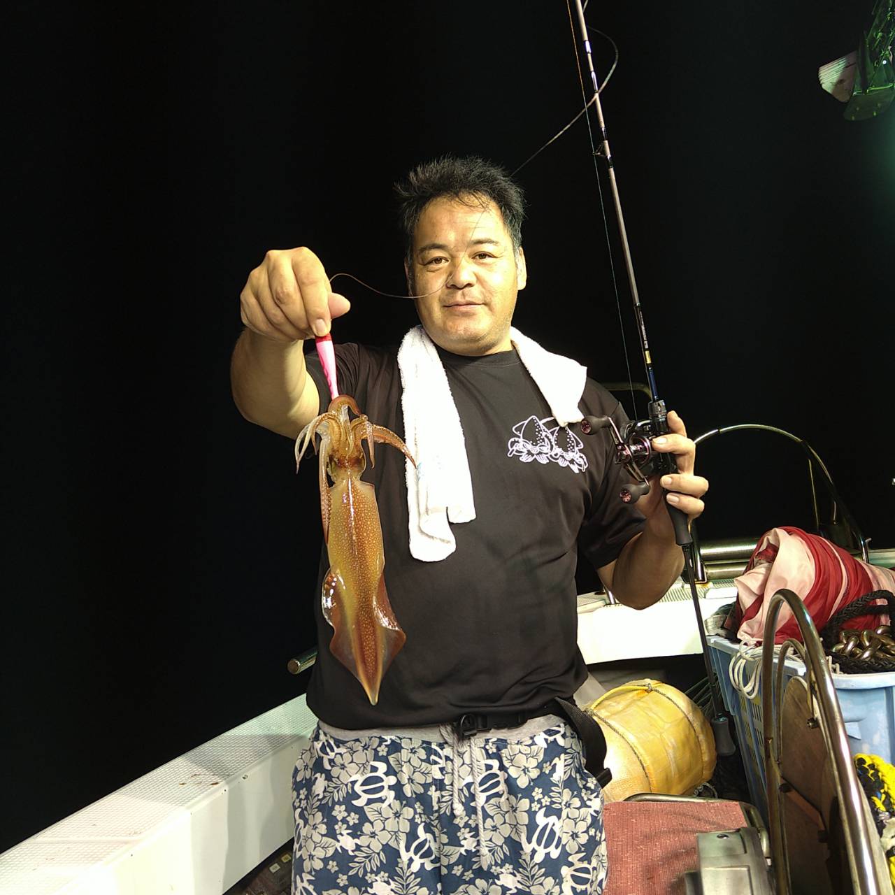 今日はどこも肝心な下の潮だけが速かったです(汗)パラシュートで調整したもののタナが深い分おまつりしました(O.O;)(oo;)点灯後あたりはありましたが、なかなか活性も上がらず単発でポツンポツンでした。でも、最後まであたりはあたりました♪(*´▽`*)タナが深いせいかサイズは抜群に良かったです!\(^-^)/竿頭マイカ20、スルメ11の計31パイでした♪チャンピオンステッカーGETおめでとうございます(*^ω^)ノ 毎日暑い日が続きます。水分補給宜しくお願いします★本日は、福井県美浜米春丸にご乗船下さいまして誠にありがとうございましたm(_ _)m