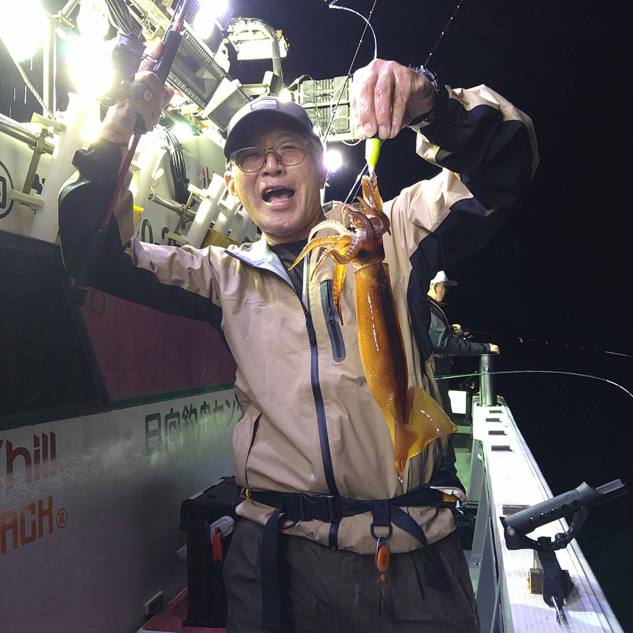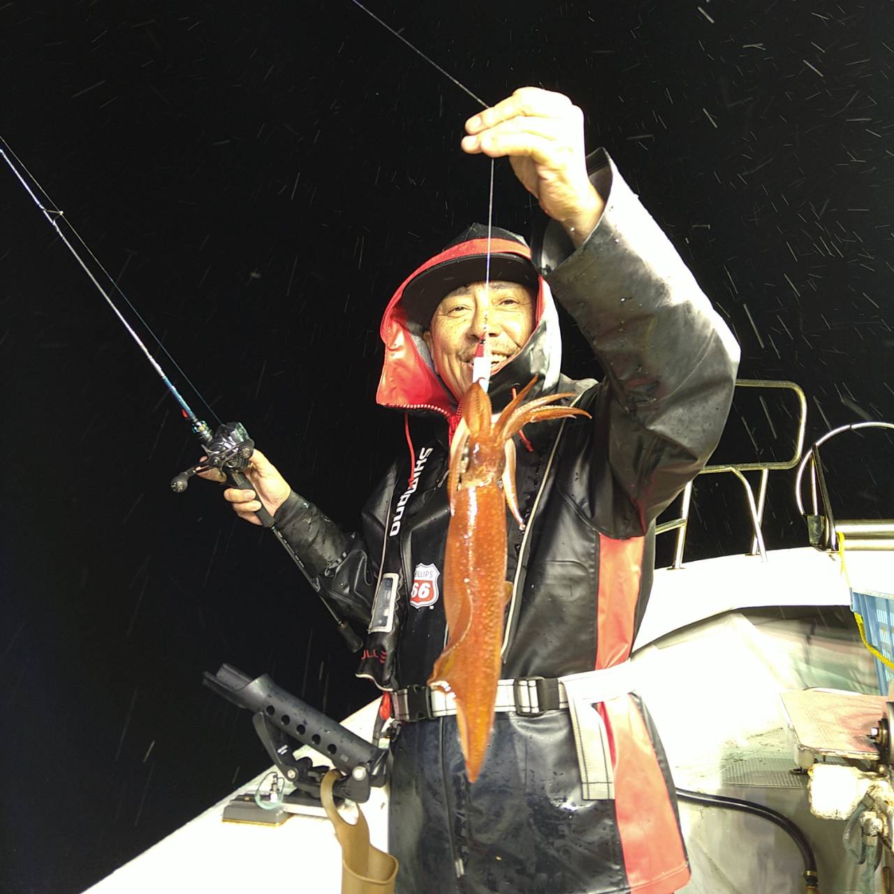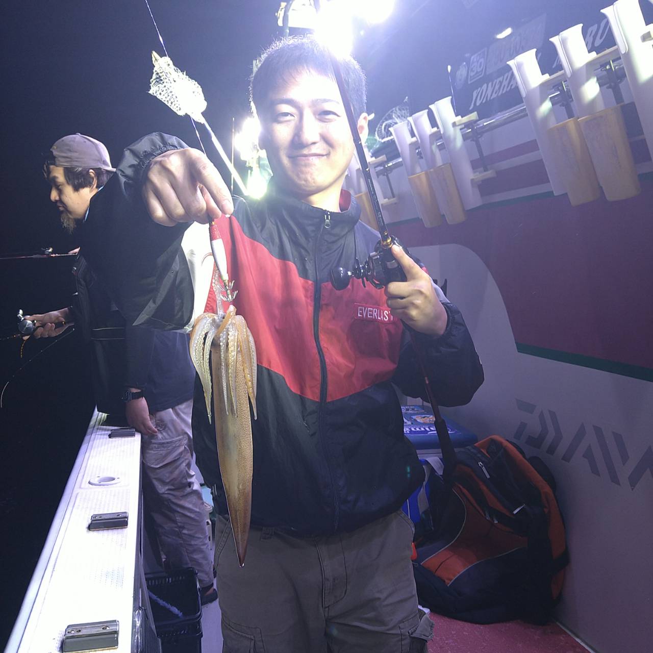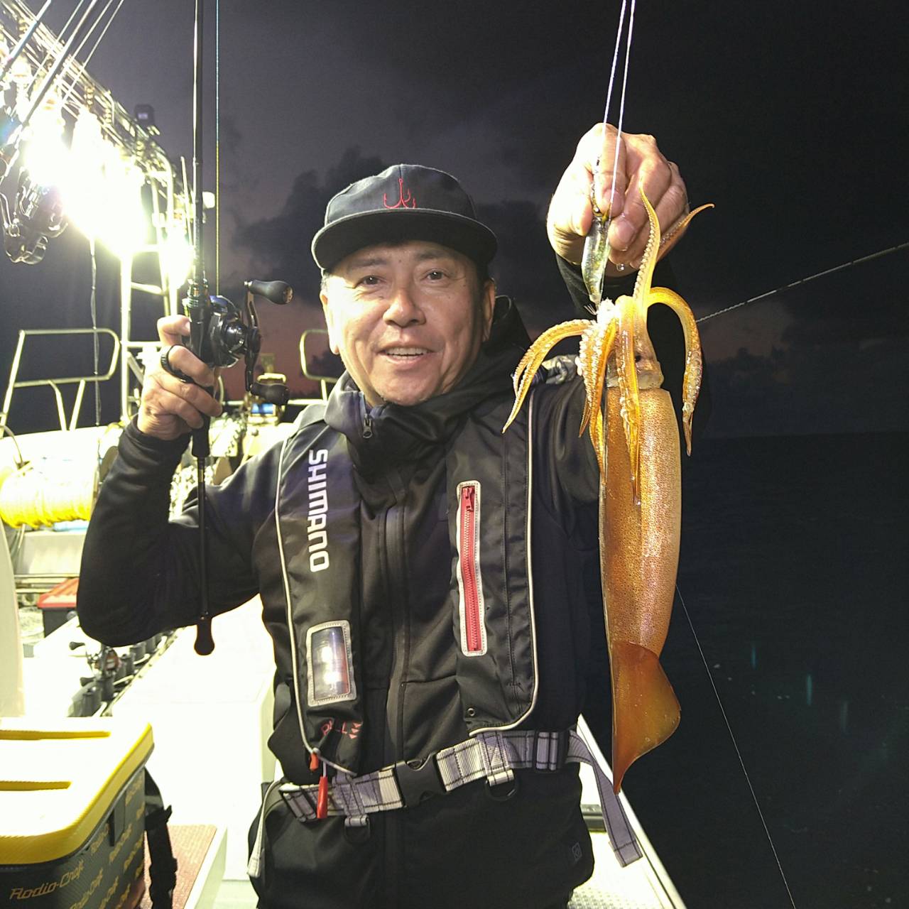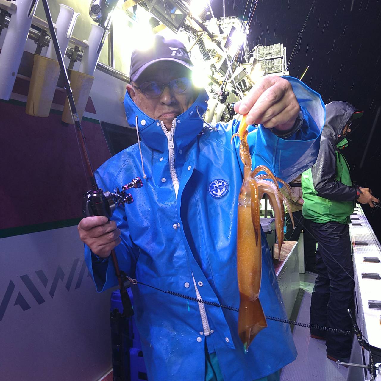 今日も潮速かったです(>_<)タナが深い分おまつりもありました。点灯してからポツンポツンと雨降りとあって後半スルメの活性ありでした。中盤マイカも船中5ハイ釣れました。スルメイカは竿頭17ハイと船中113バイでした(=^ェ^=)早くマイカがスルメ位釣れて欲しいですね〜。今日は、マイカ竿頭2ハイでした!チャンピオンステッカーGETおめでとうございます(*^ω^)ノ 日に日にスルメイカも顔を出してきてくれるようになってきたので、今後のチャンピオンステッカーはマイカ、スルメイカの合計で、決定させていただきます★o(*⌒―⌒*)o カラーチェンジしたチャンピオンステッカーです♪お楽しみに(^ー^)