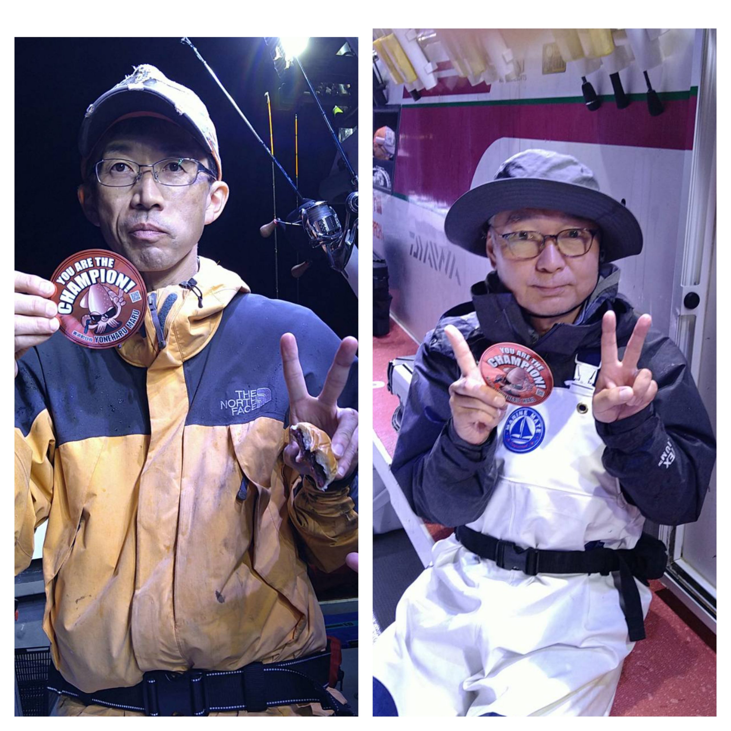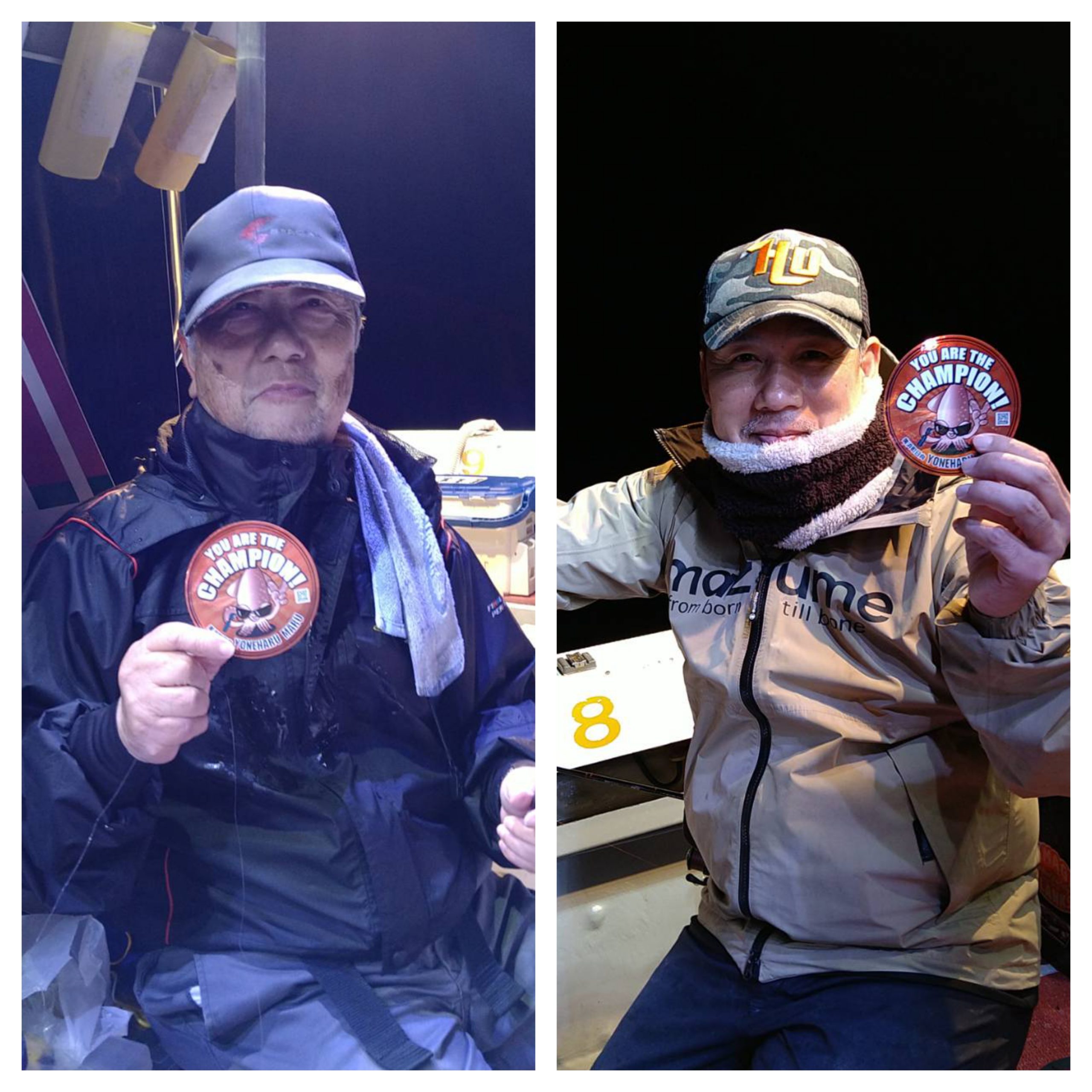 今日は潮緩かったですが、南風が強過ぎて釣りにくかったです(>_<)点灯してから、なかなかあたりが出ませんでした。ようやくあたりがあっても単発でしたね〜。最後まで厳しい状況でした(++)それでもみなさん最後まで頑張ってくれてありがとうございましたm(_ _)m カラーチェンジしたチャンピオンステッカーをGETされた村上さんおめでとうございます(*^ω^)ノ 本日は、福井県美浜米春丸にご乗船下さいまして、誠にありがとうございましたm(_ _)m