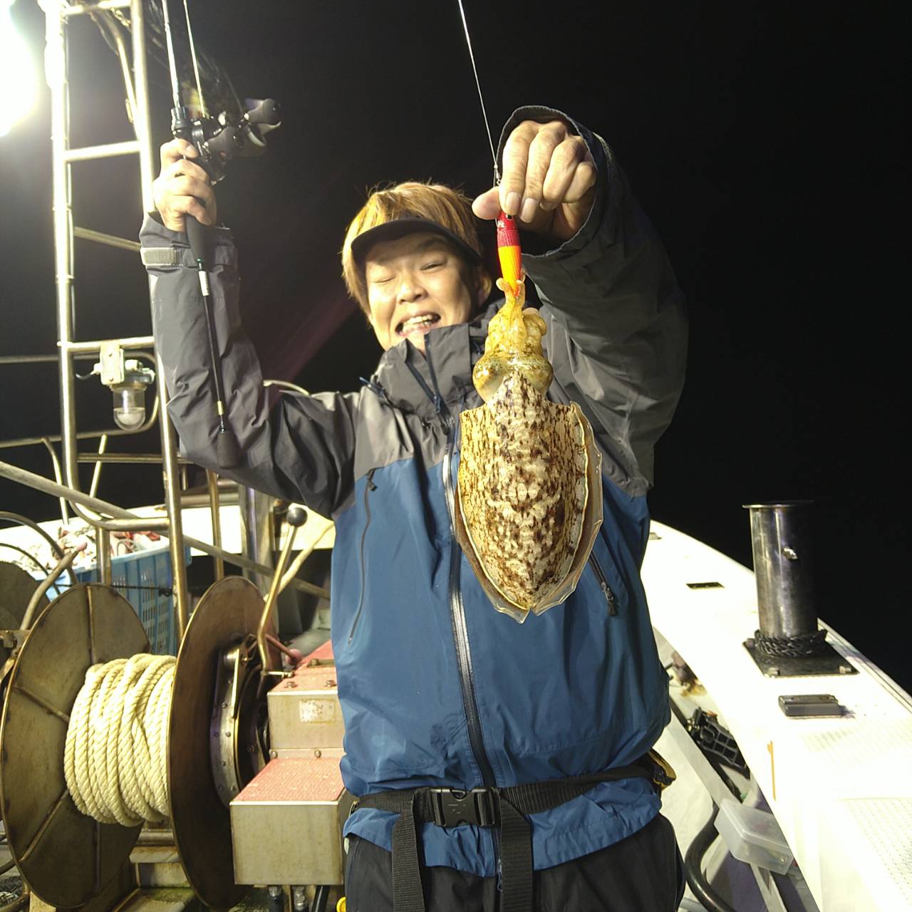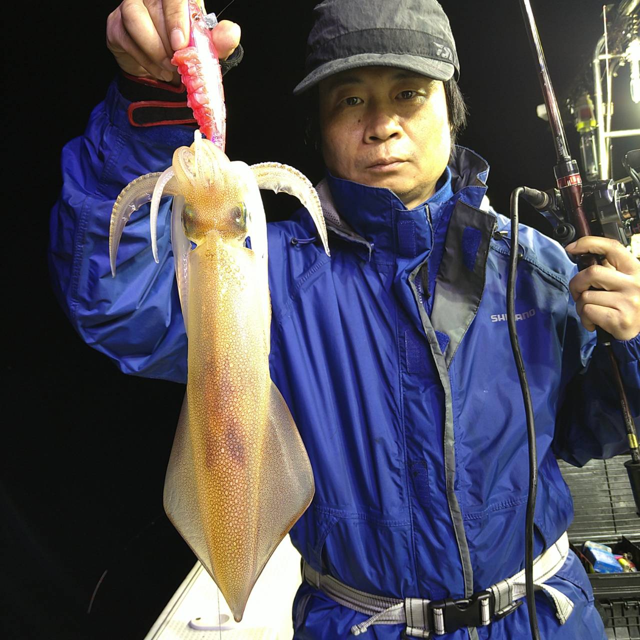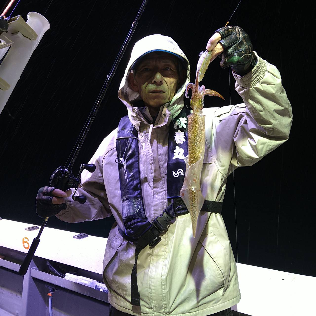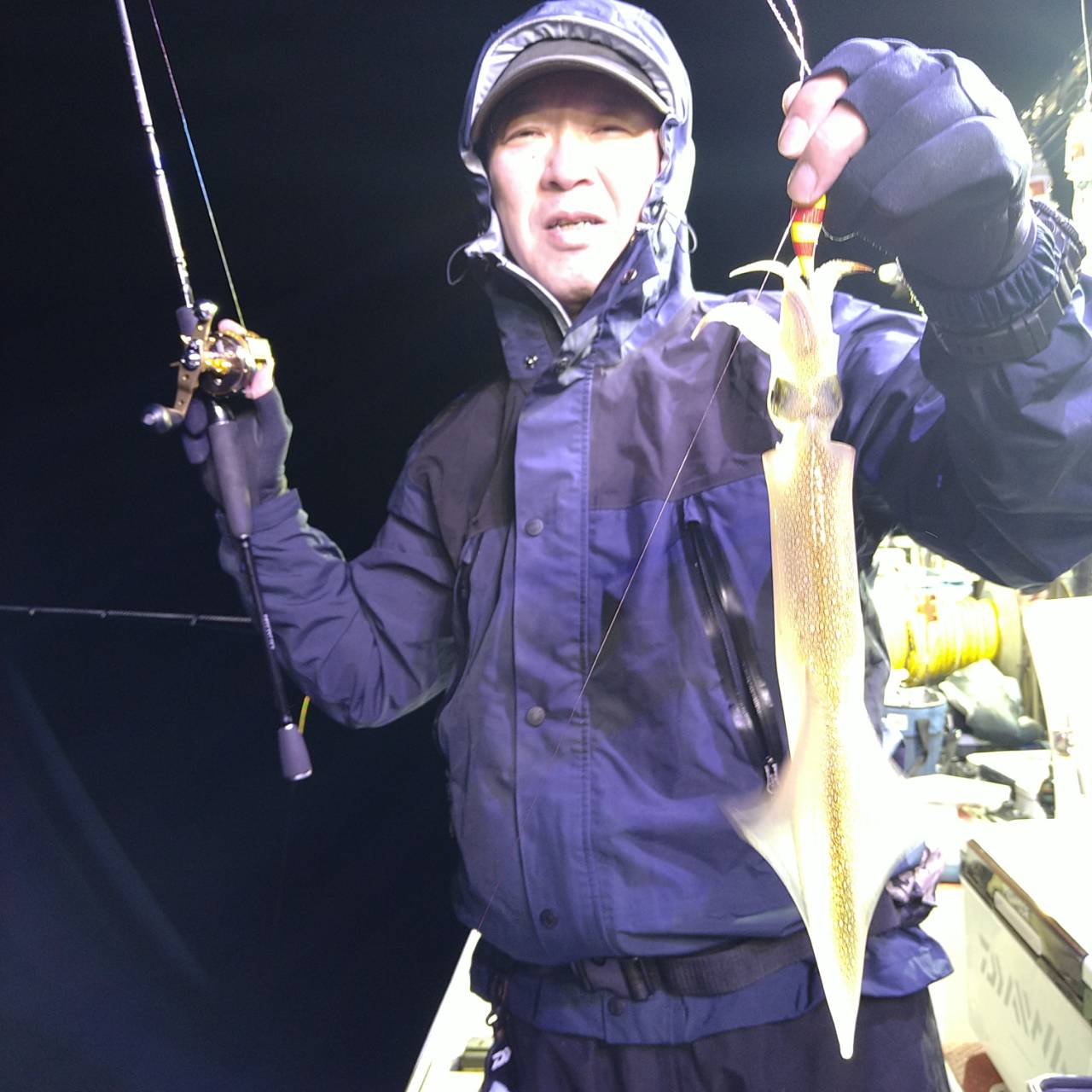 半夜ヤリイカ(マイカ)にて出船しました★夕方顔見れました♪点灯してから少し待ち時間、たま〜にポツンの単発あたりでした。オスヤリが主体のメタボマイカ混じりでした(^o^)後半2、3人あたる場面もありましたが、数は出ませんでした。オモリグ餌巻きが良かったですね。竿頭7ハイと根気の釣りとなりました。チャンピオンステッカーGETおめでとうございます(*^ω^)ノ本日は福井県美浜米春丸にご乗船下さいまして誠にありがとうございましたm(_ _)m