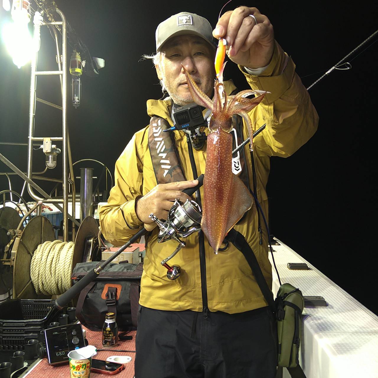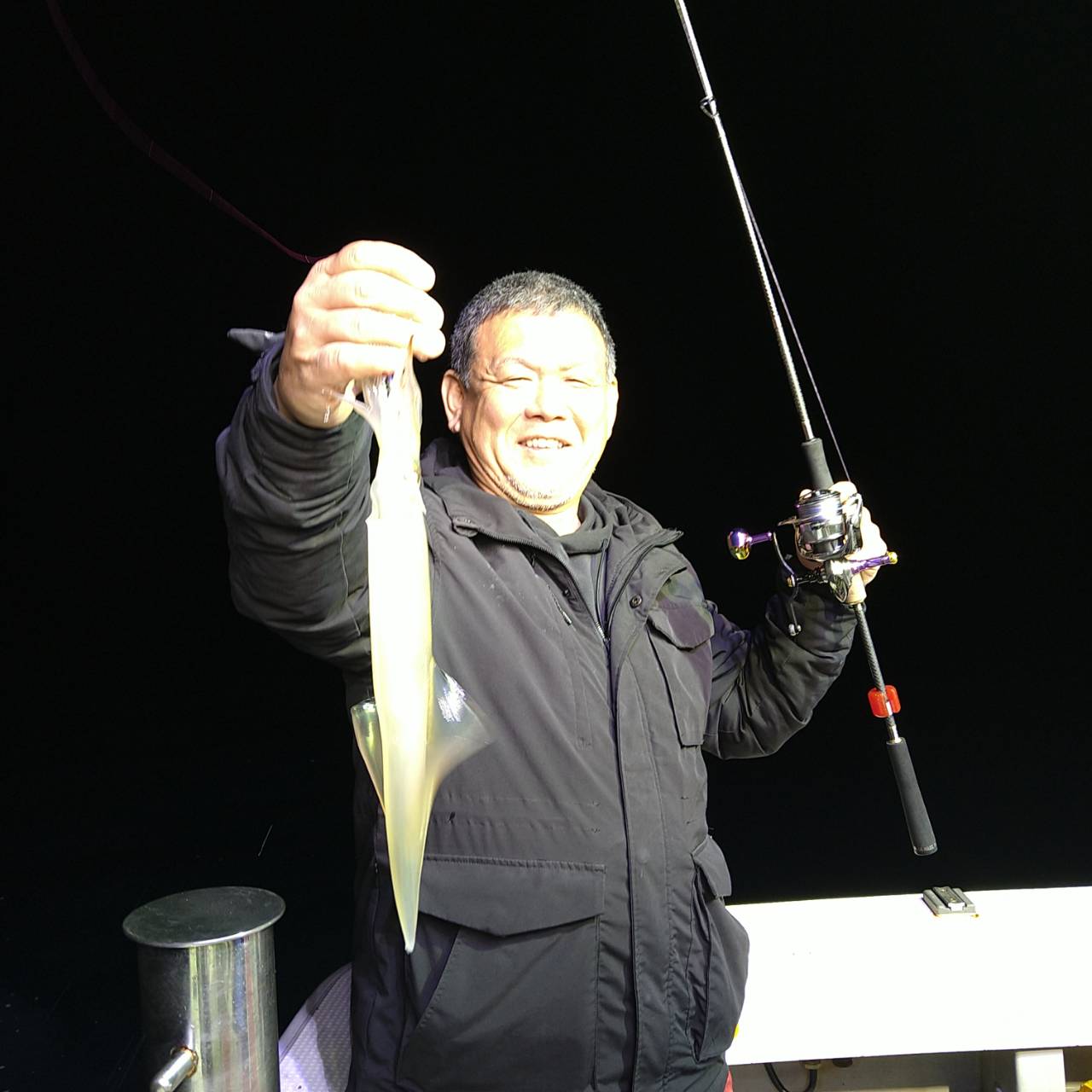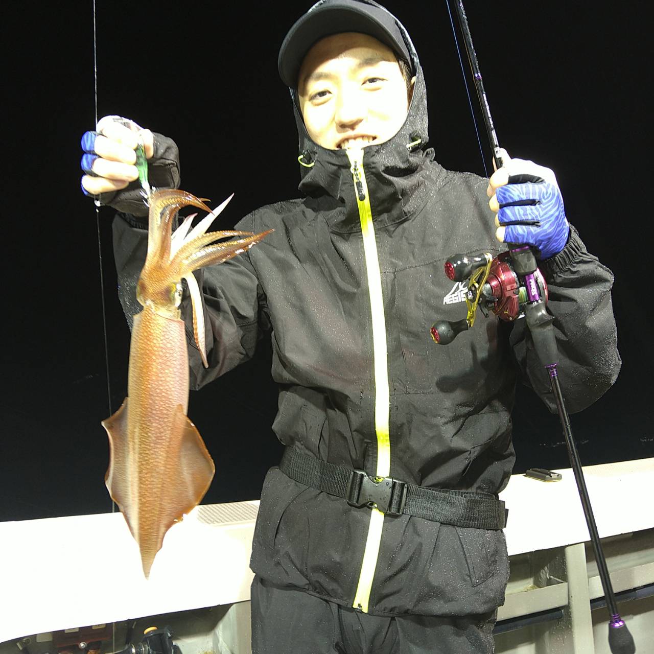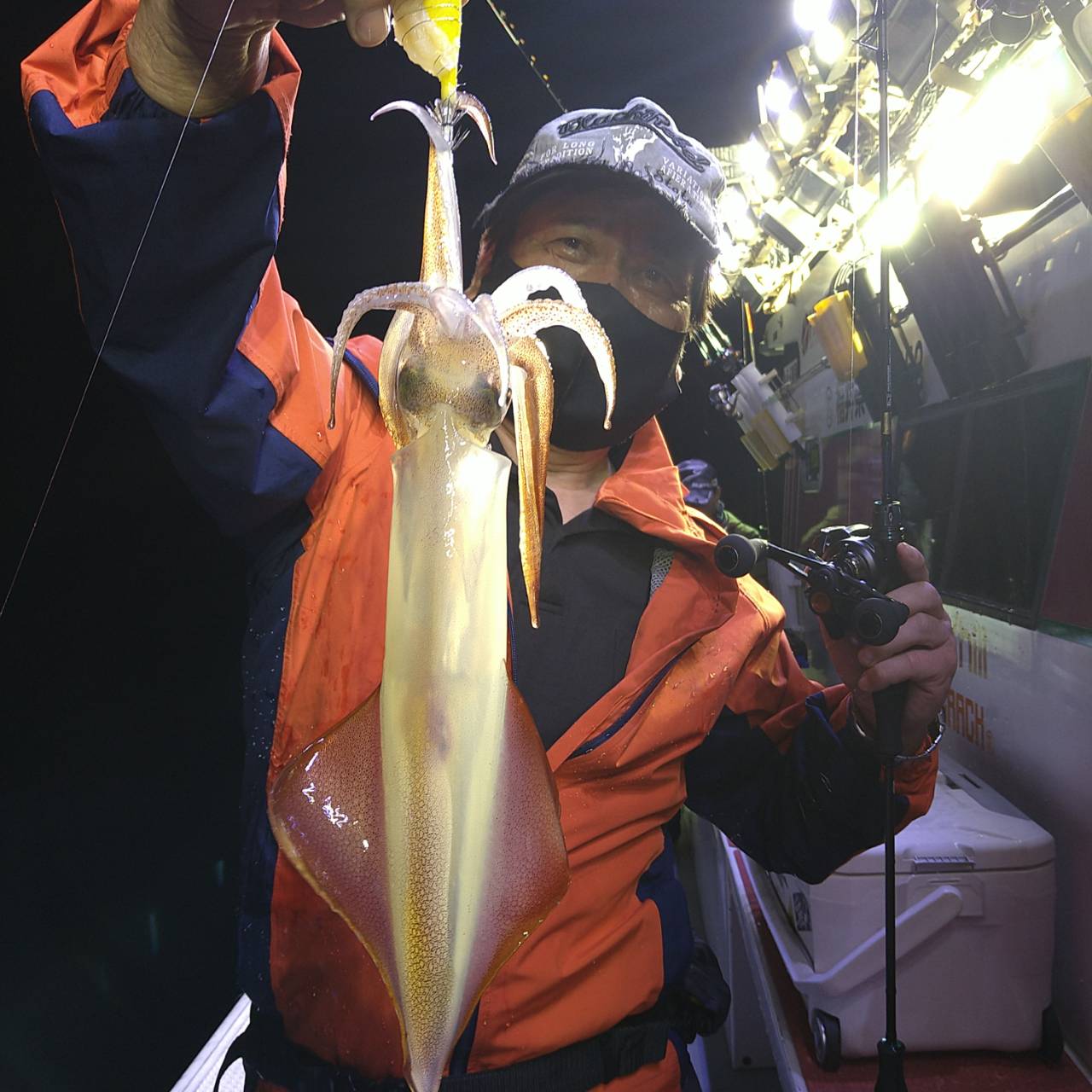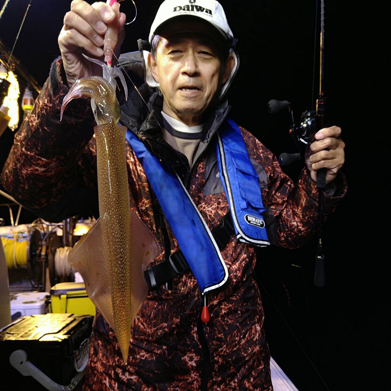 半夜ヤリイカ(マイカ)にて出船しました★夕方顔見れました♪点灯してから少し待ち時間、たま〜にポツンの単発あたりでした。オスヤリが主体のメタボマイカ混じりでした(^o^)後半2、3人あたる場面もありましたが、数は出ませんでした。オモリグ餌巻きが良かったですね。竿頭7ハイと根気の釣りとなりました。チャンピオンステッカーGETおめでとうございます(*^ω^)ノ本日は福井県美浜米春丸にご乗船下さいまして誠にありがとうございましたm(_ _)m