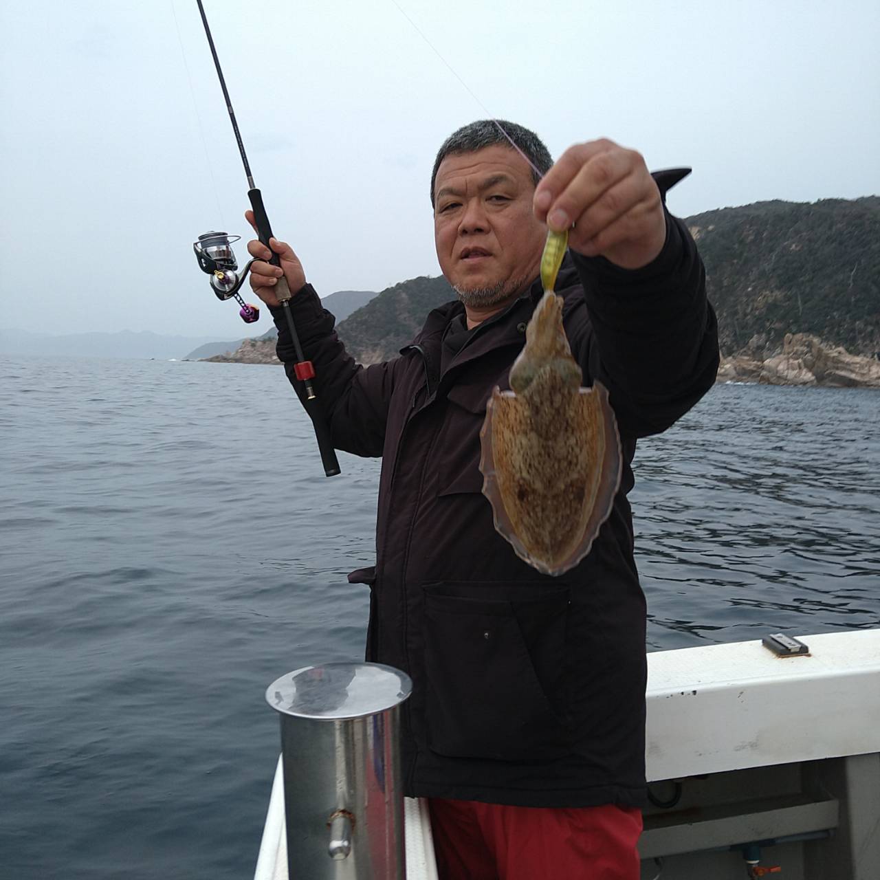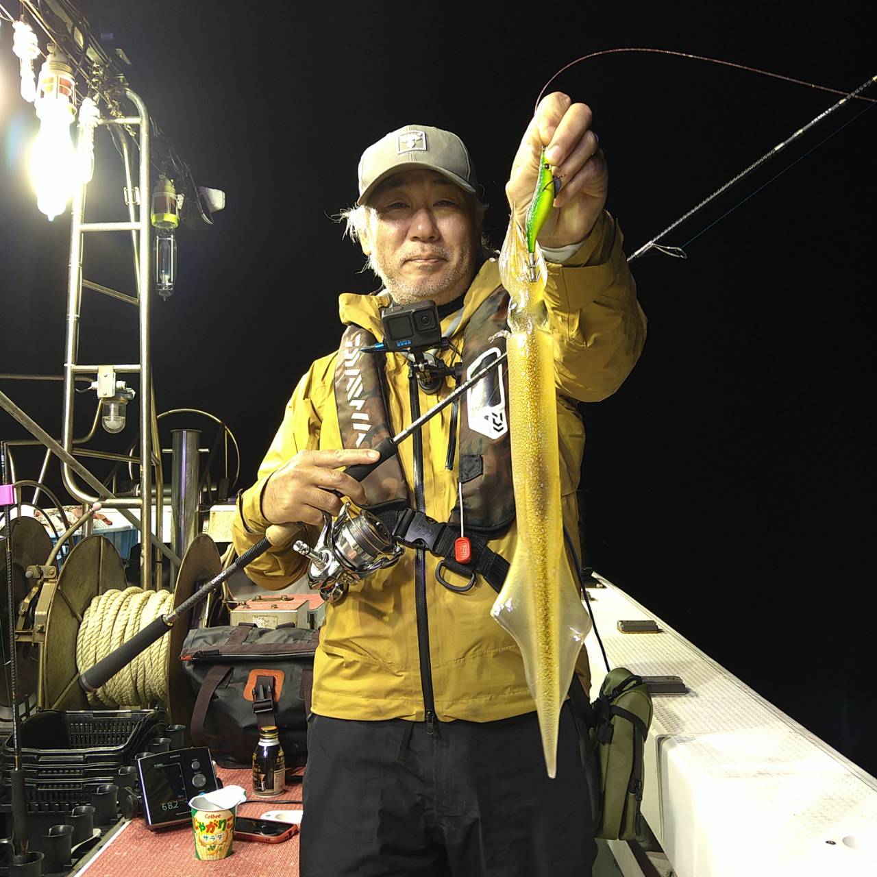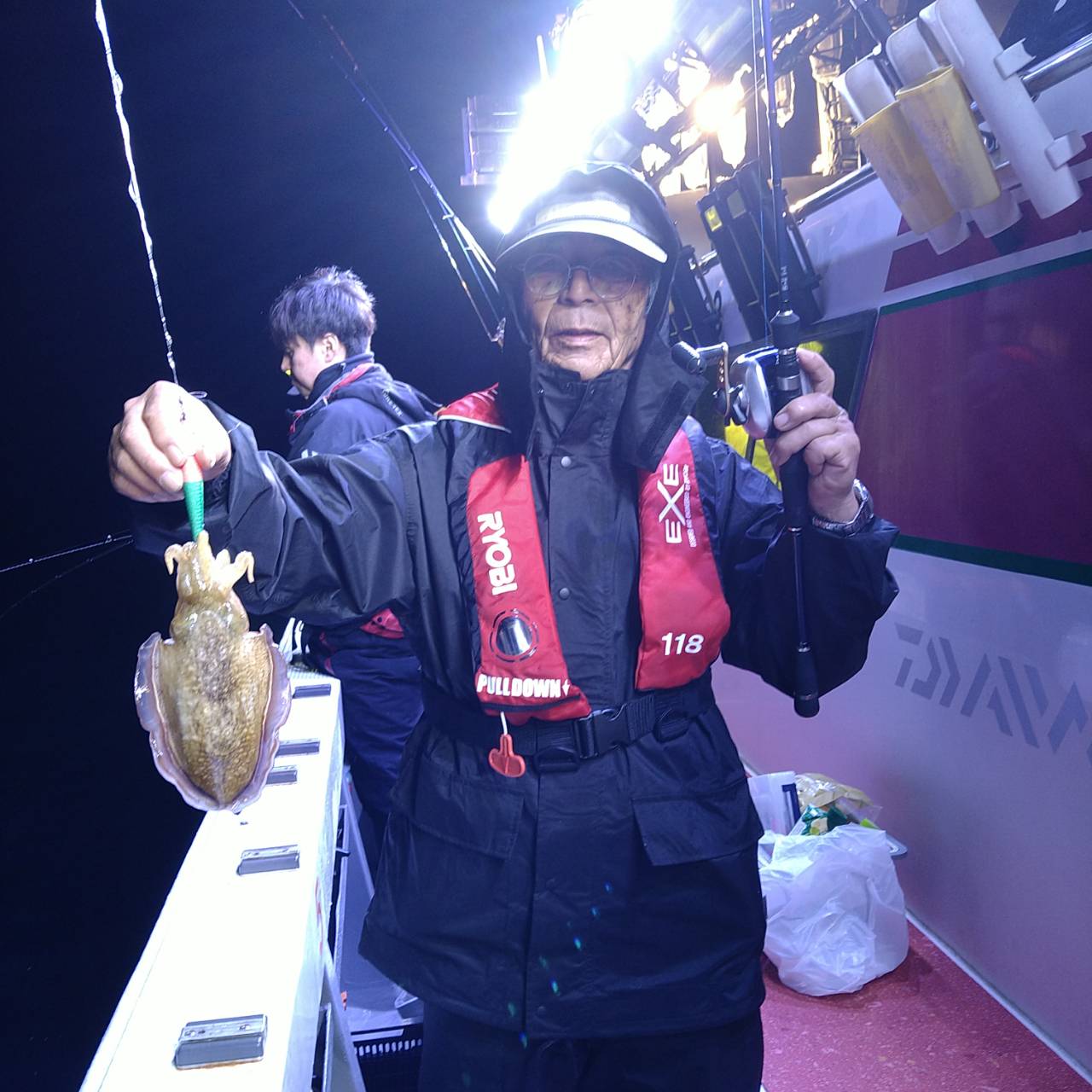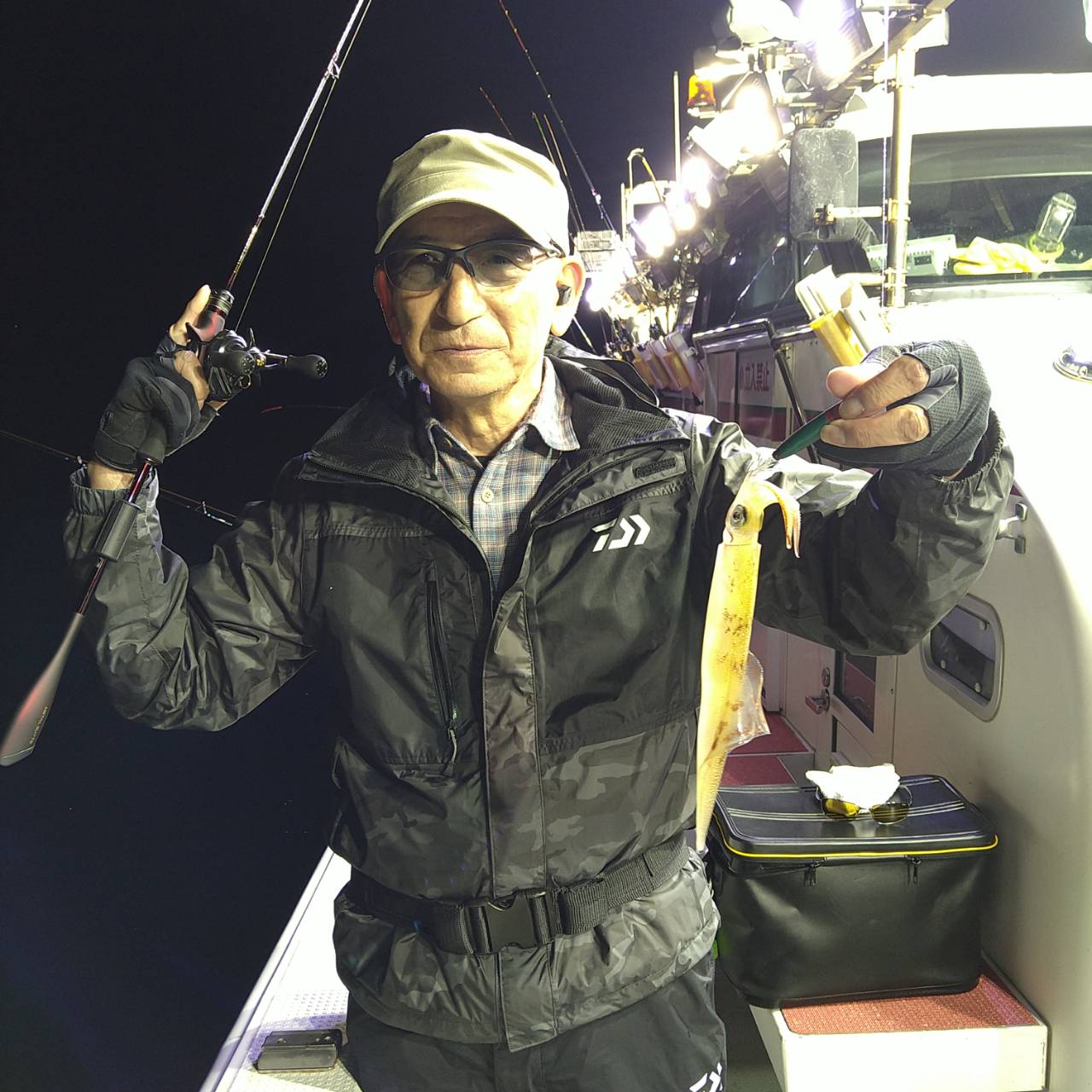 半夜ヤリイカ(マイカ)にて出船しました★夕方顔見れました♪点灯してから少し待ち時間、たま〜にポツンの単発あたりでした。オスヤリが主体のメタボマイカ混じりでした(^o^)後半2、3人あたる場面もありましたが、数は出ませんでした。オモリグ餌巻きが良かったですね。竿頭7ハイと根気の釣りとなりました。チャンピオンステッカーGETおめでとうございます(*^ω^)ノ本日は福井県美浜米春丸にご乗船下さいまして誠にありがとうございましたm(_ _)m