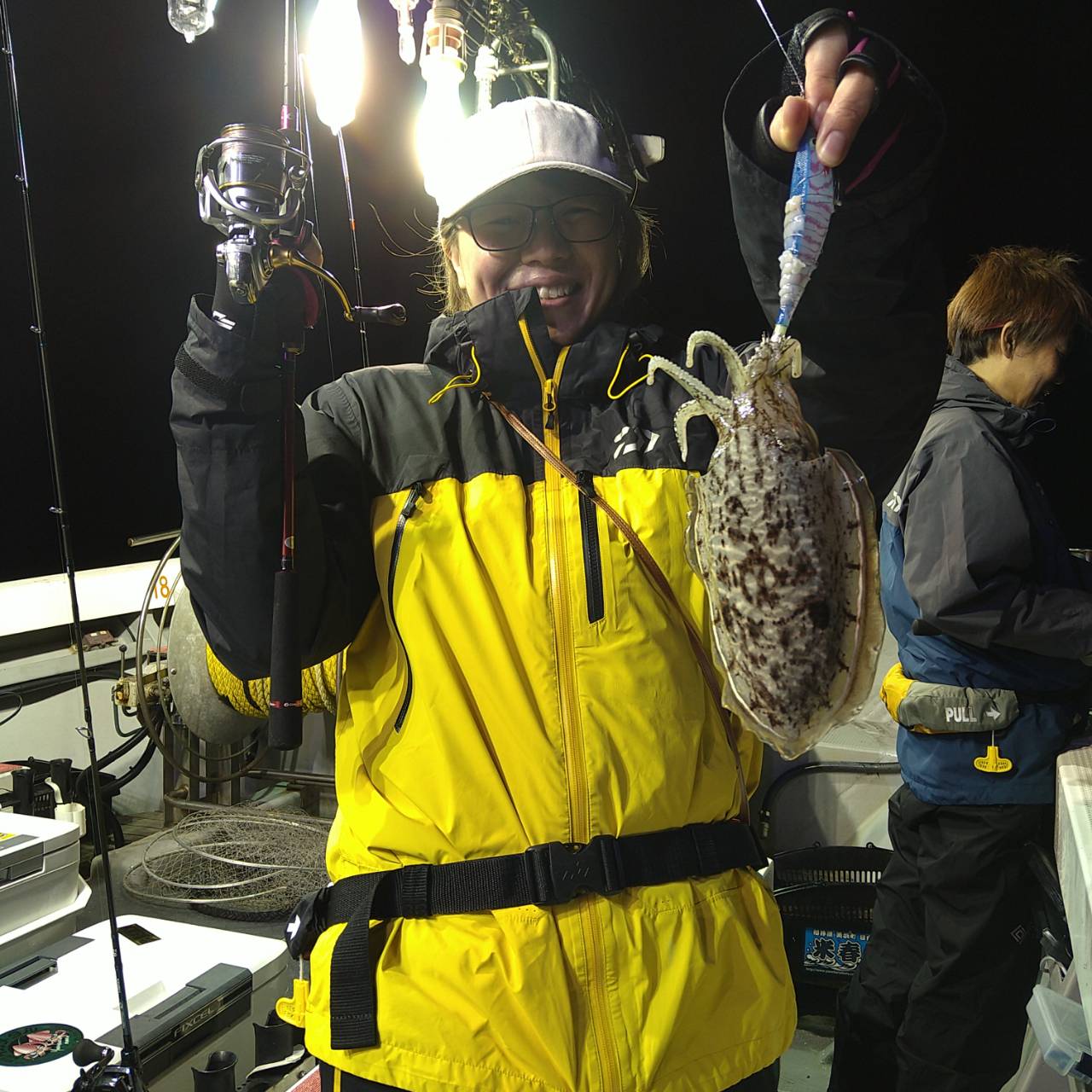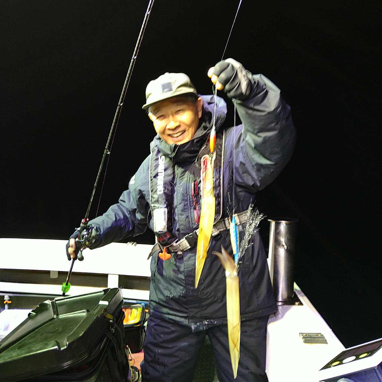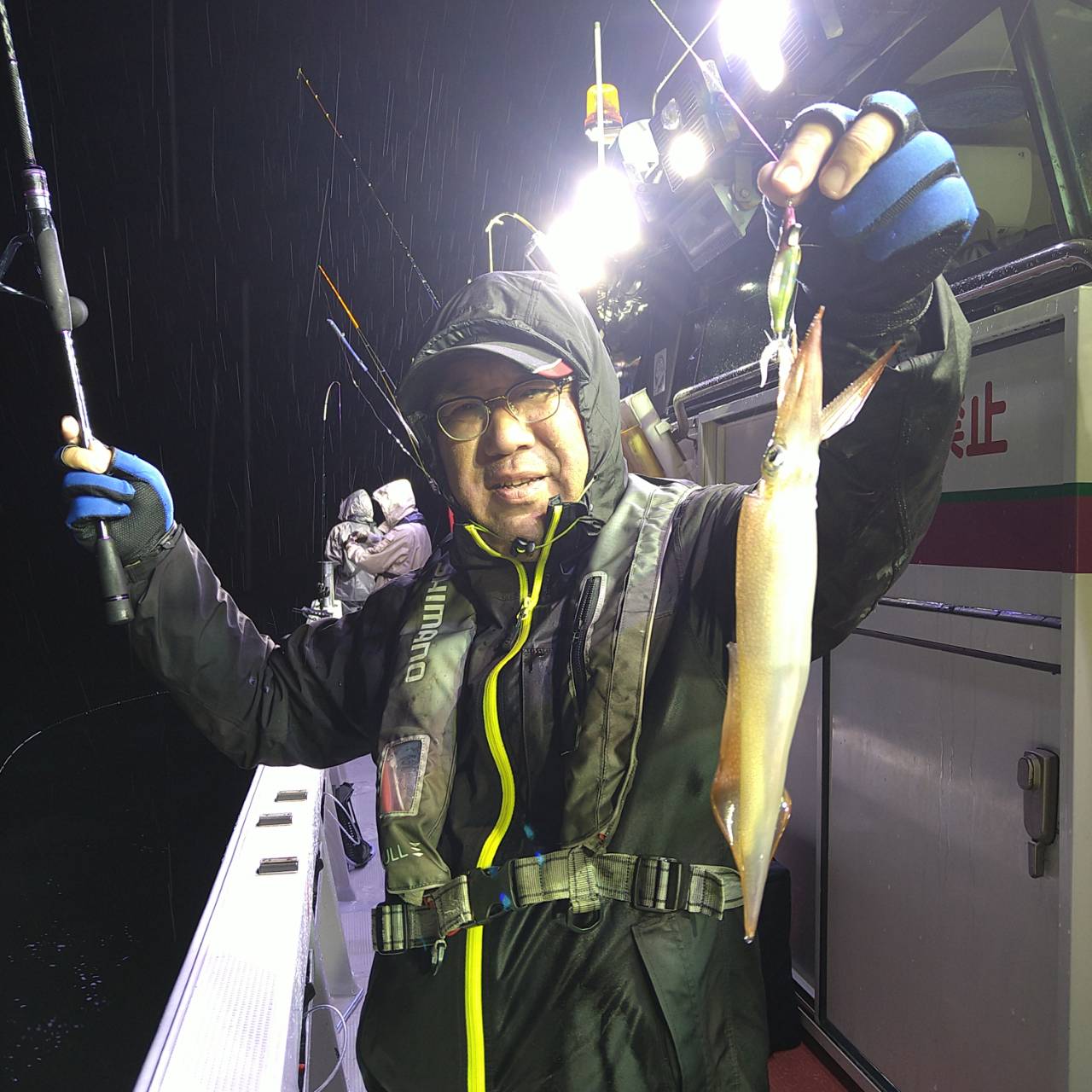 今日は半夜ヤリイカに行って来ました★最初から最後まで雨が降る肌寒い一日でした。点灯してから、いつもより早い時間にあたりが出たので期待しましたが、やはり、、、甘くはなかったです(^-^; たま〜に釣れる感じでした。オスヤリの値打ちはありありでした★でも、もう少しあたりが欲しかったですね。竿頭小川さん12ハイでした!チャンピオンステッカーGETおめでとうございます(*^ω^)ノ本日は、福井県美浜米春丸にご乗船下さいまして、誠にありがとうございましたm(_ _)m