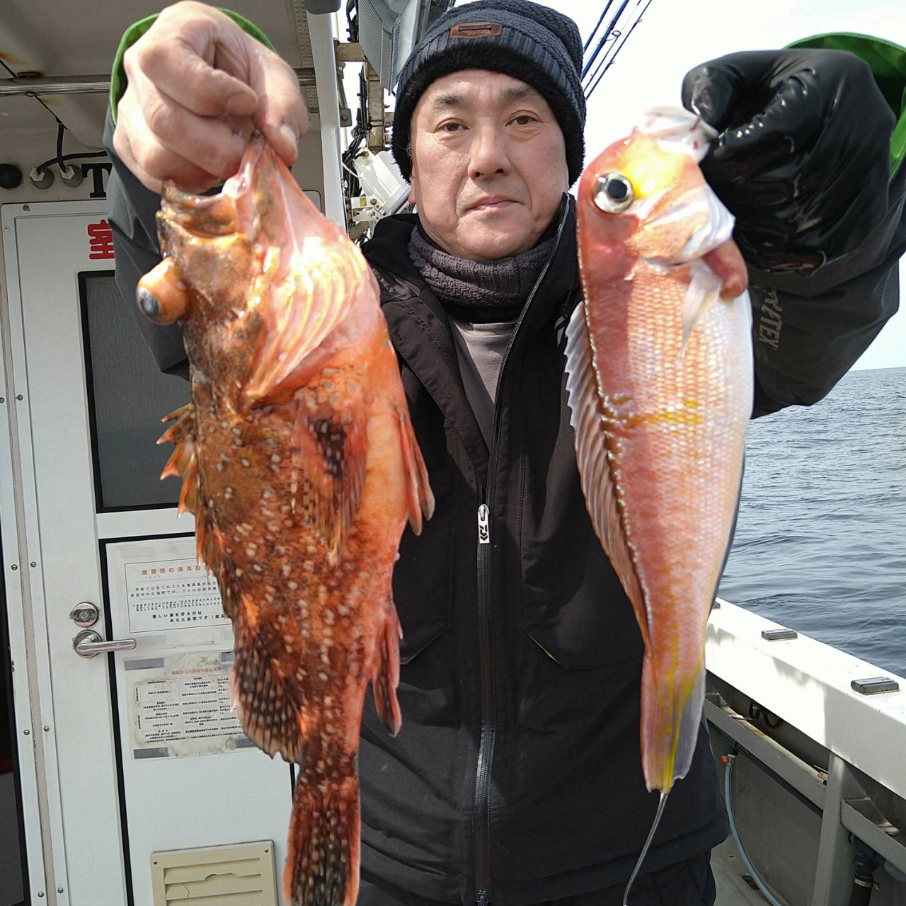 朝便は凪良し、天気良しの釣り日和でした(^o^)一匹がなかなか釣れない感じでしたが釣れる魚は高級魚ばかりなので頑張ってもらいました(*^^*)デカカサゴも混じり、キジハタ、オニカサゴが釣れました♪アマダイは船中5匹!厳しい中お疲れ様でした★餌はイカ短、サバやサンマの切り身がいいですよ♪店にはおいてないので細く短冊状にして持って来て下さいネ★(*^^*)本日は福井県美浜米春丸にご乗船下さいまして、誠にありがとうございましたm(_ _)m