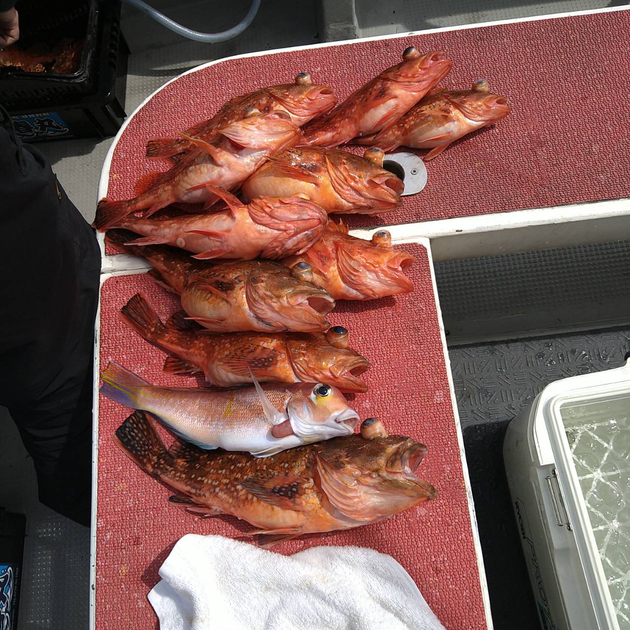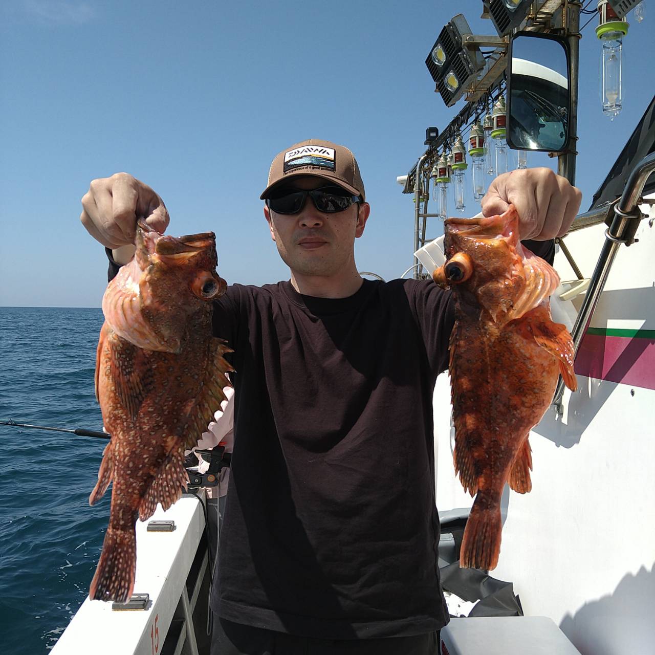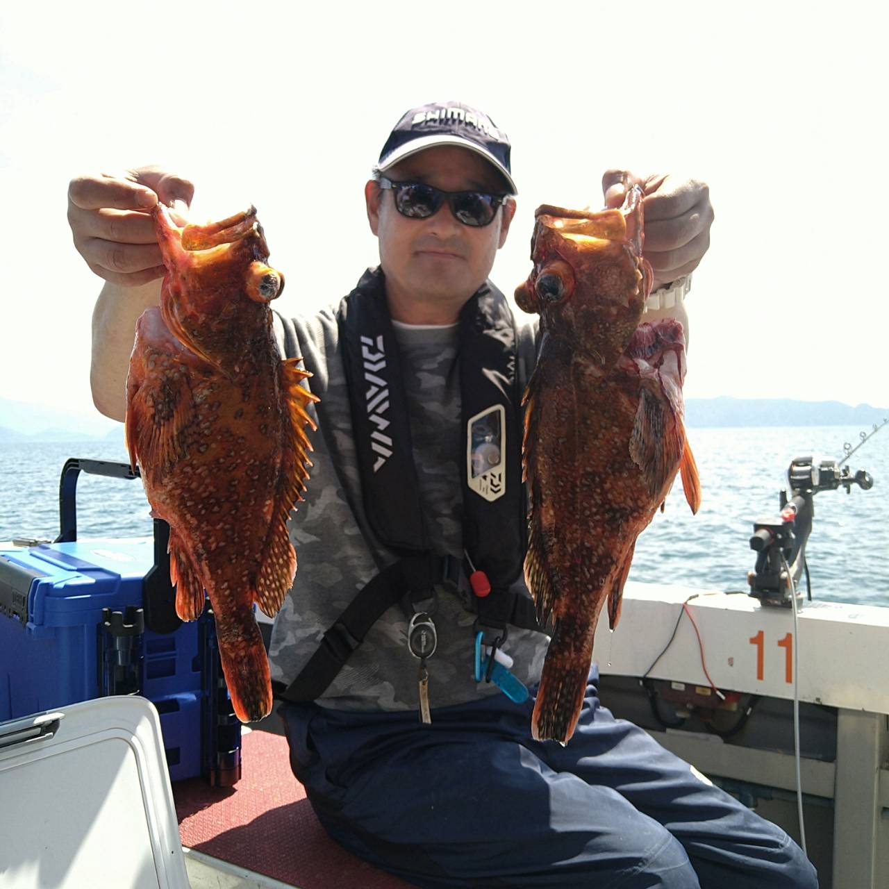 今日はいい天気のいい凪の釣日和でした(=^ェ^=)漁礁まわりを中心に流しました。たま〜にしかカサゴが釣れませんが、サイズがいいので頑張ってもらいましたよo(*⌒―⌒*)oアマダイは小型ばかりでしたが船中8匹釣れました。カサゴは多い人で13匹、オニカサゴ、キジハタ、レンコ、ミズカレイと釣れました♪カサゴが釣れる間まだまだ出船します★イカ短、サバの切り身があるとなお良いので、細く短冊状にして持って来て下さいネ(^ー^)本日は、福井県美浜米春丸にご乗船下さいまして、誠にありがとうございましたm(_ _)m