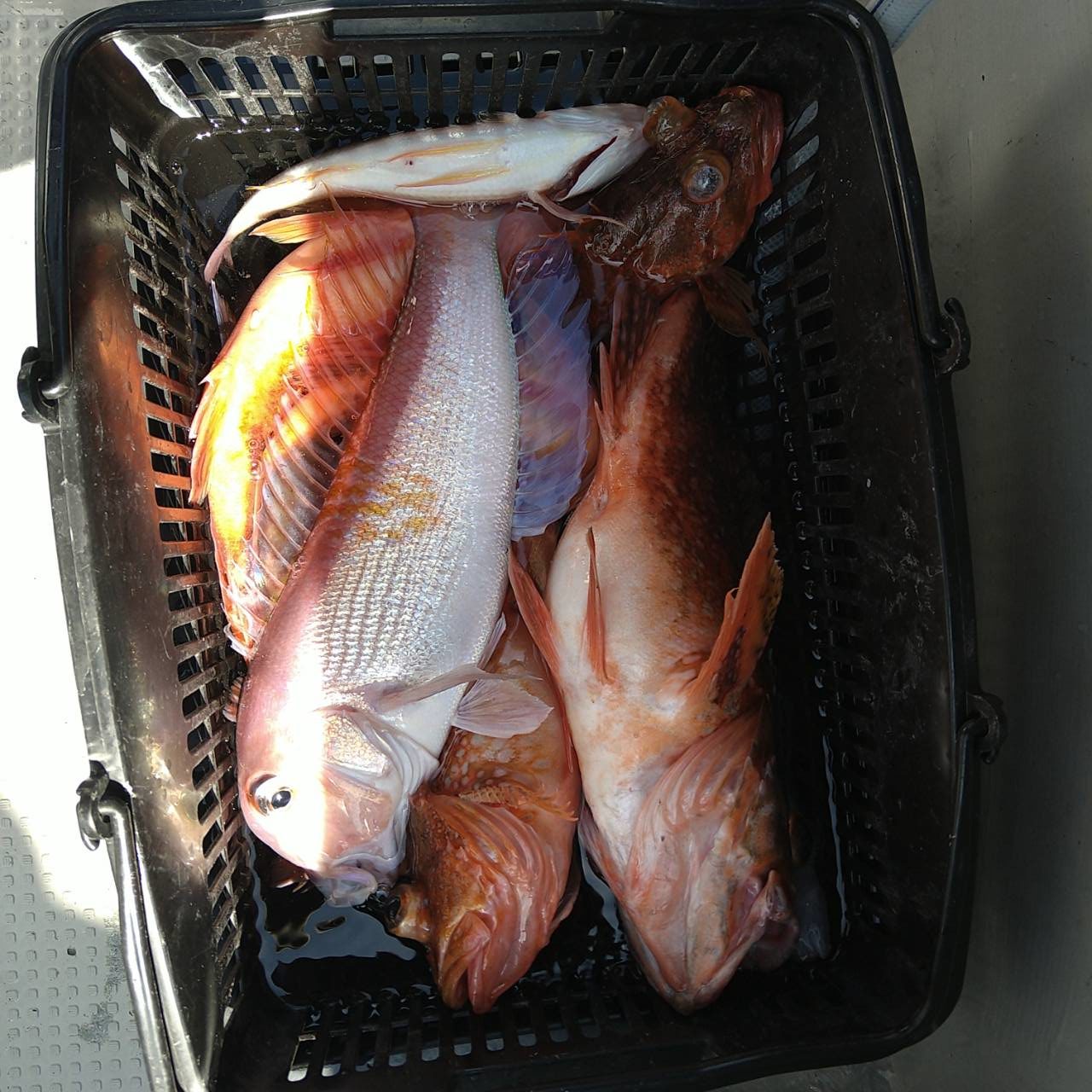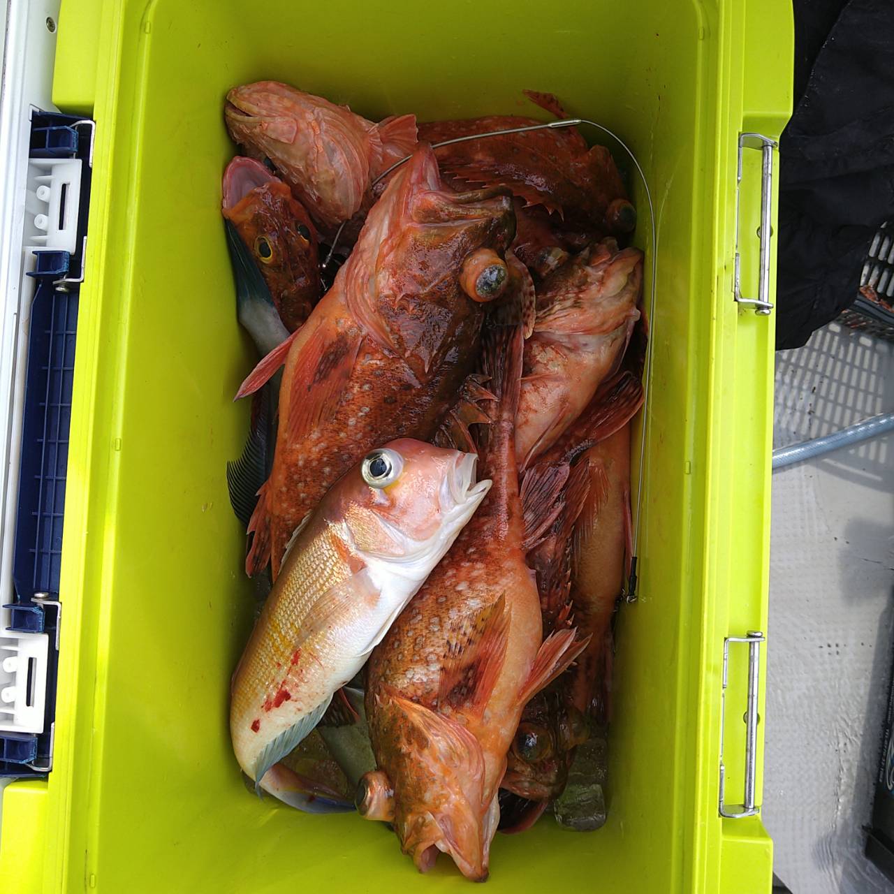 今日は上と下の潮が正反対の2枚潮でした。流しにくくおまつり目立ちました。何故かカサゴの活性がいつもになく良かったです(*^^*)アマダイもたま〜に釣れてくれました♪餌はサンマ、サバの切り身がよかったです★底潮が動いていたので、まずまず釣れた様に思います(^o^)アマダイは船中12匹!オニカサゴ船中7匹、カサゴ船中約60匹!!他キジハタ、レンコ、ミズカレイ、カナガシラでした。天気もよく、色々釣れて、良かったです(*^^*)「楽しかったよ〜」とのお声をたくさん頂きまして、誠にありがとうございました(*^^*)嬉しかったです!