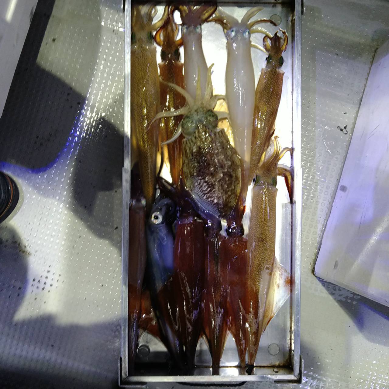 ヤリイカ便で出船しました。今年は特に厳しくて、貴重な貴重なヤリイカ(>_<) 岩場でやりました。夕方何バイか顔見れましたが、点灯してからなかなかでした(汗)どうにかこうにかみなさんが全員ヤリイカの顔だけは見れました。根気がいる釣りでしたね〜。竿頭鳥屋さんヤリイカ11パイでした。チャンピオンステッカーGETおめでとうございます(*^ω^)ノ今後、よくなることを期待して★また、出船する時には、よろしくお願いいたしますm(_ _)m本日は、福井県美浜米春丸にご乗船下さいまして、誠にありがとうございましたm(_ _)m