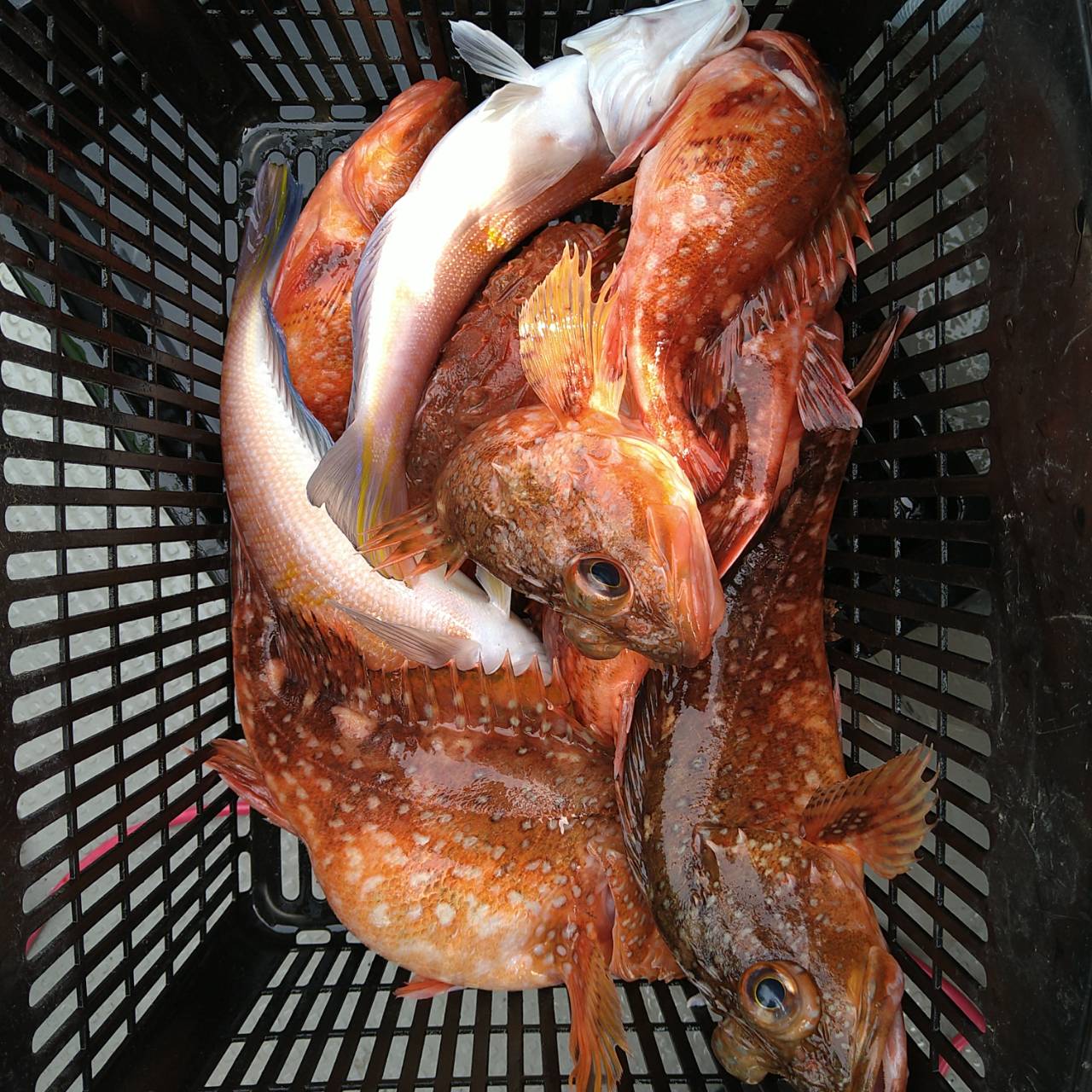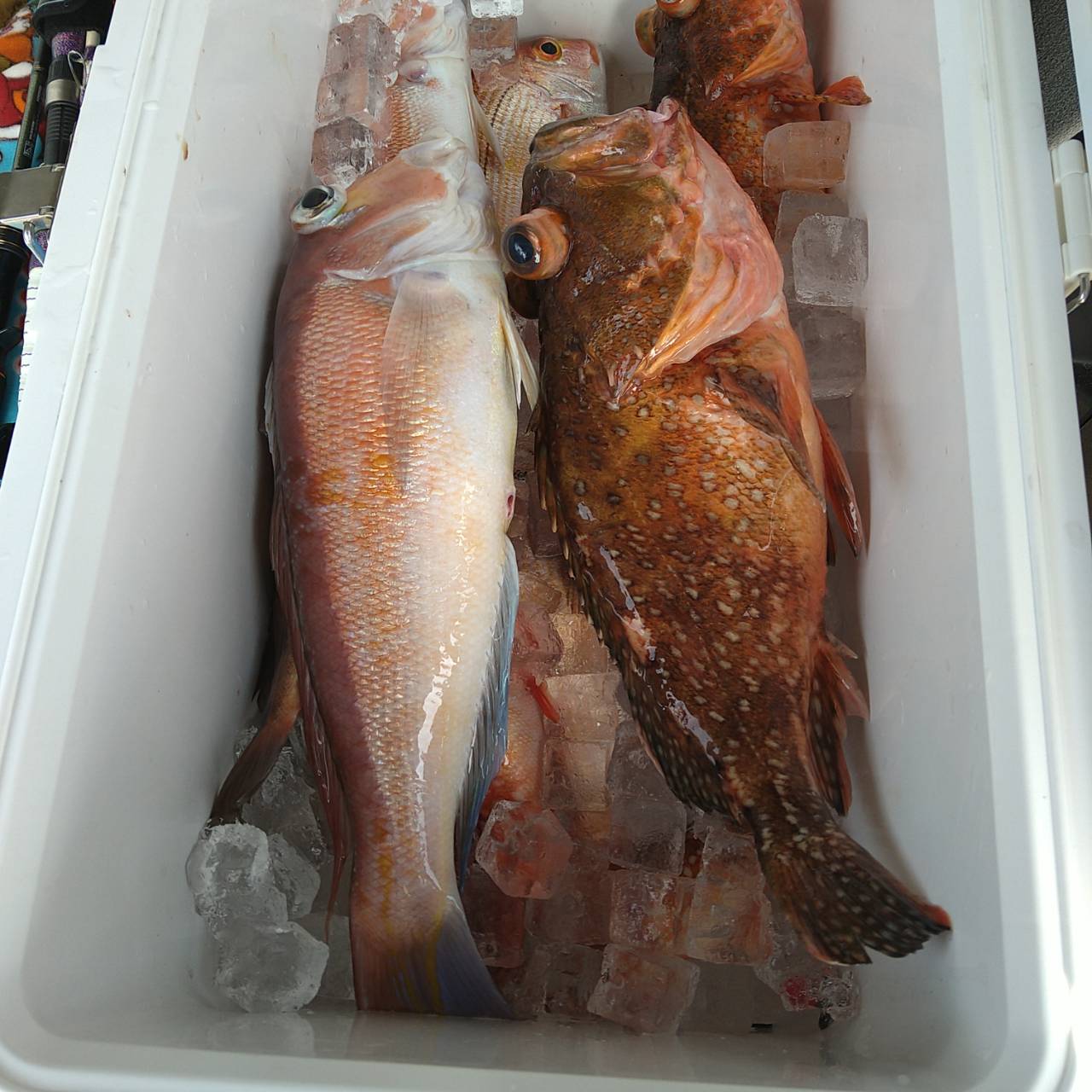 朝便アマダイは底潮が全くない一日でした。水温が低く、底潮ない為、岩場でしか魚が反応してくれませんでした。根掛かりしながらも、みなさん頑張ってもらいました。ようやく昼前にアマダイも顔見せてくれました(*^^*)ウネリが高く釣りにかったですね〜。アマダイ40cm超えを頭に船中5匹、カサゴ良型混じり船中50匹以上、他オニカサゴ、キジハタ、ウマズラ、レンコ、水ガレイでした★
