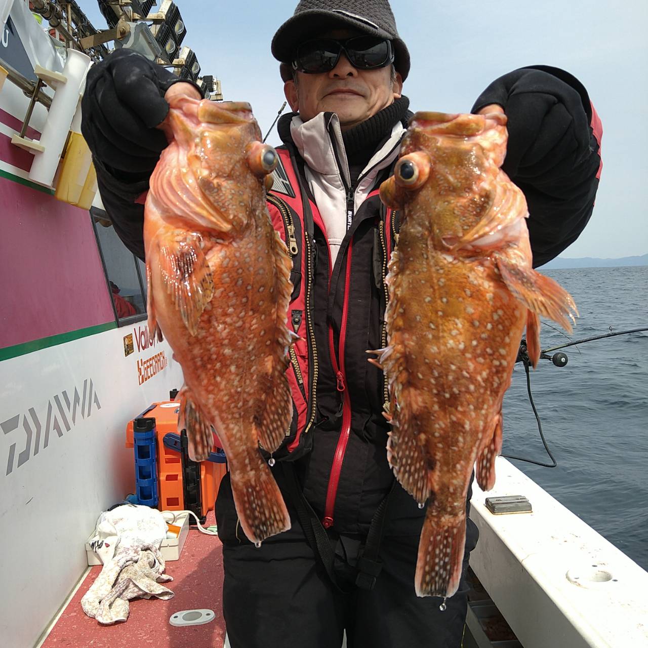 今日はいい潮がいってました。それなのに魚の喰いがめっちゃ悪かったです(TOT)どこを流しても単発でした。アマダイも小型1匹と寂しい釣果でした(泣)カサゴはいい人で8匹、他キジハタ、オニカサゴ、レンコ、カナガシラでした。水温が下り過ぎたのか??カサゴは産卵の為、警戒心が強かったのか??厳しい一日でした。そんな中お疲れ様でした。また、お願い致しますm(_ _)m本日は福井県美浜米春丸にご乗船下さいまして誠にありがとうございましたm(_ _)m