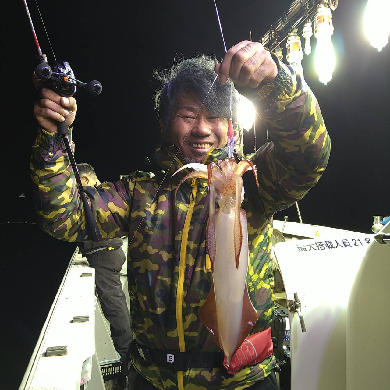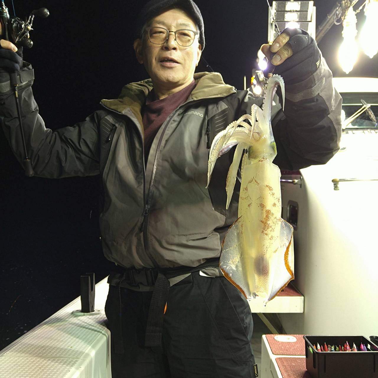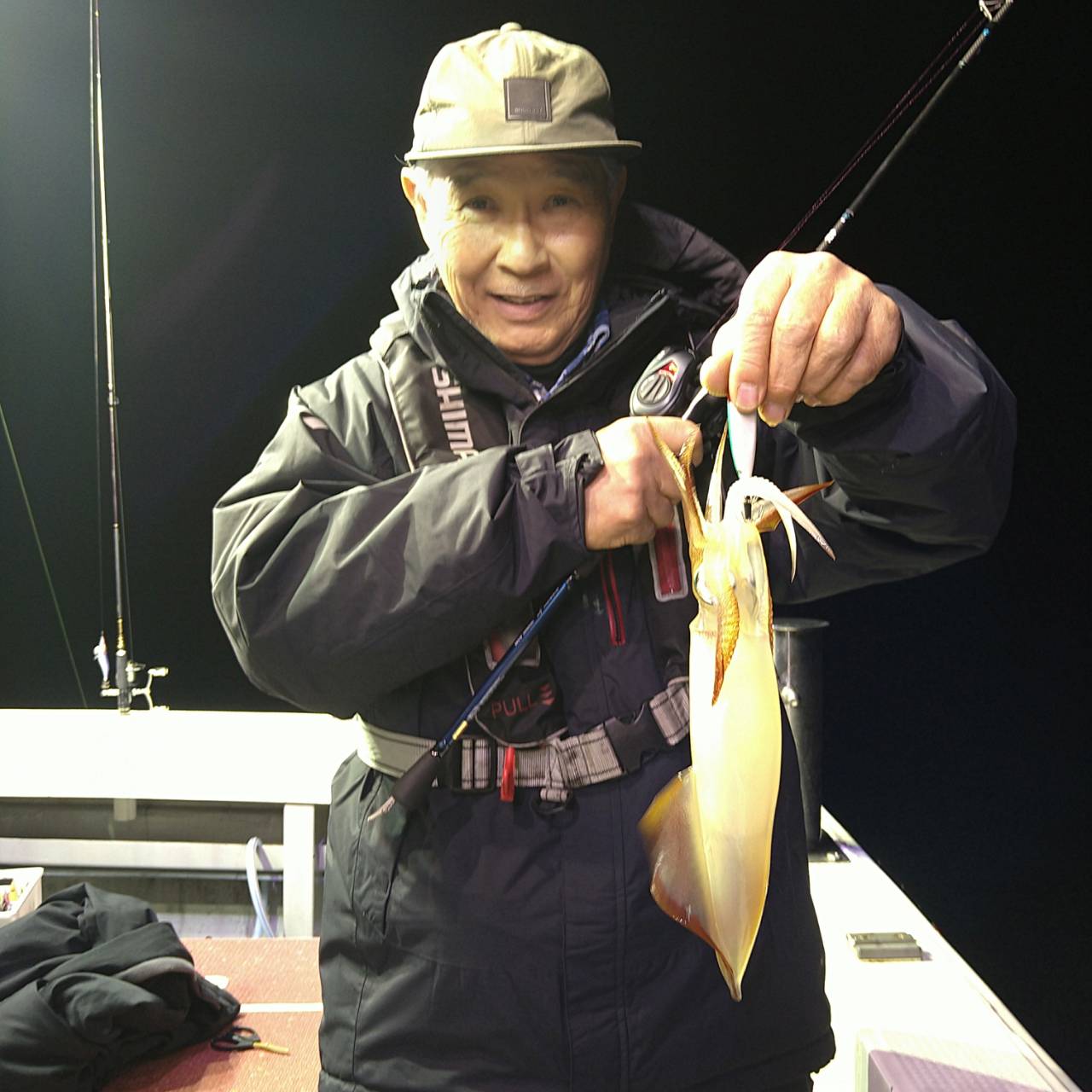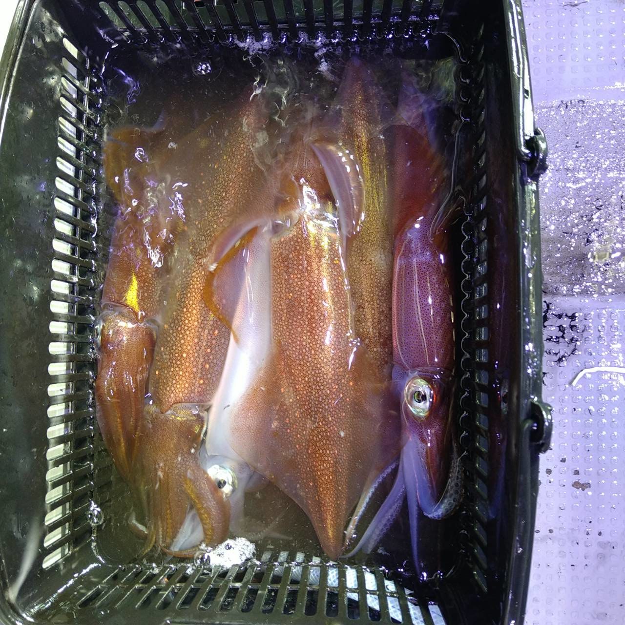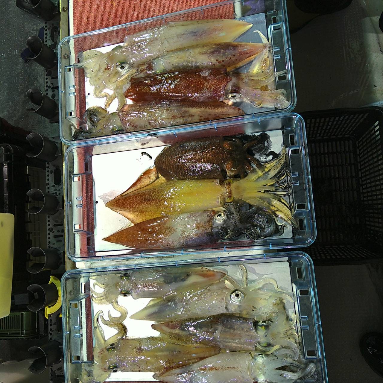 今日は潮なしでした。点灯してからあたりが弱く、前回の事ながら後半に期待しましたが、だんだん潮が加速してやりにくかったです(>_<)あたりも弱く根気のいる釣りとなりました。でも、サイズがめっちゃいいだけが救いでした( ^ω^ )竿頭飯田さんマイカ12ハイ、スルメ3バイの計15ハイでした。チャンピオンステッカーGETおめでとうございます(*^ω^)ノ本日は、福井県美浜米春丸にご乗船下さいまして、誠にありがとうございましたm(_ _)m