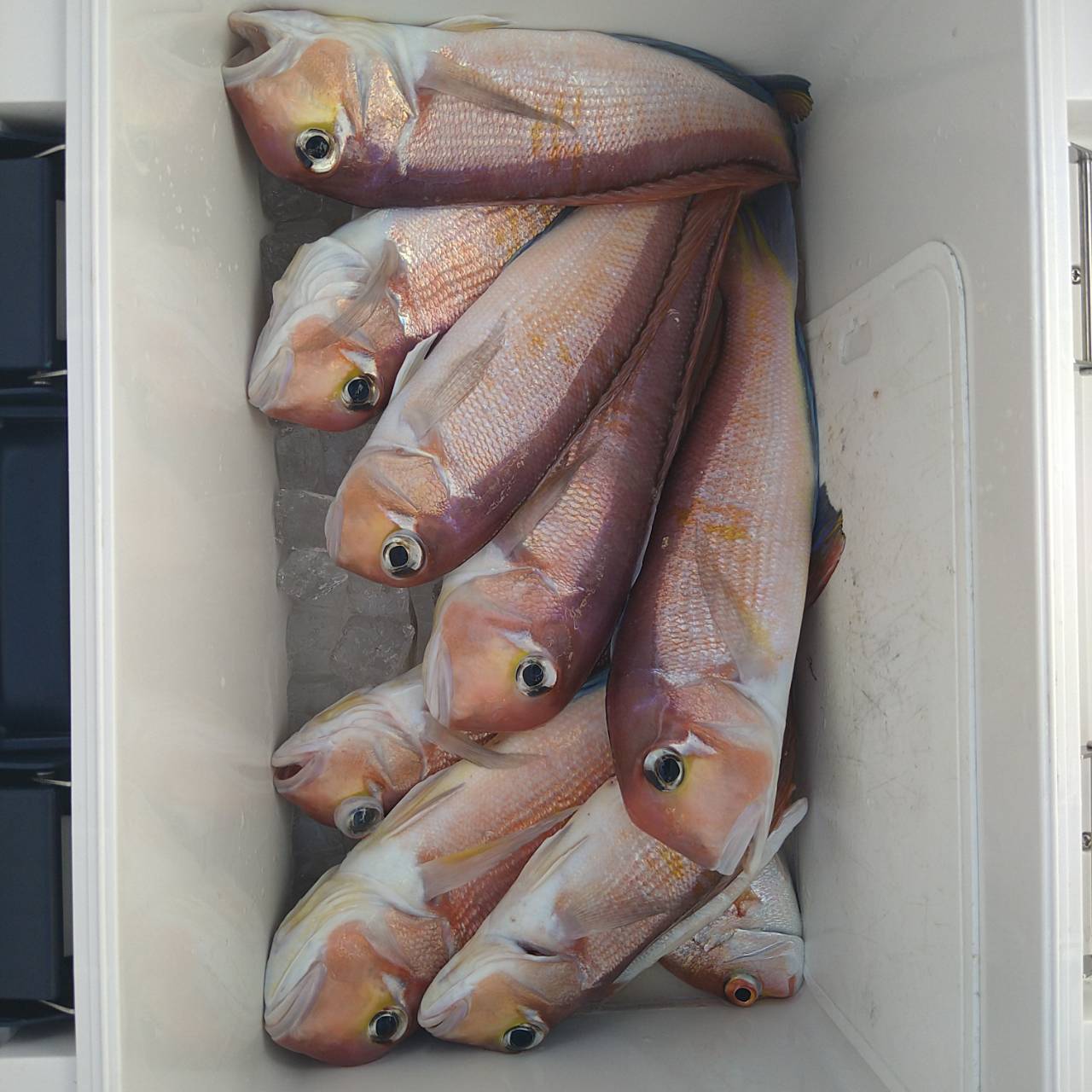 今日は底潮が速かったせいか、水温が低くなったおかけでアマダイの活性が良かったです!!いるのに、いたのに、喰わなかった感じですが、ようやく例年通りの釣れ方でした( ^ω^ )個人差はあったものの竿頭蛭川さん12匹はなかなか出ない釣果です(o^-^o)次の方9匹と、少し寒い一日でしたが良かったです!!また荒れあとお願いいたします★本日は、福井県美浜米春丸にご乗船下さいまして、誠にありがとうございましたm(_ _)m