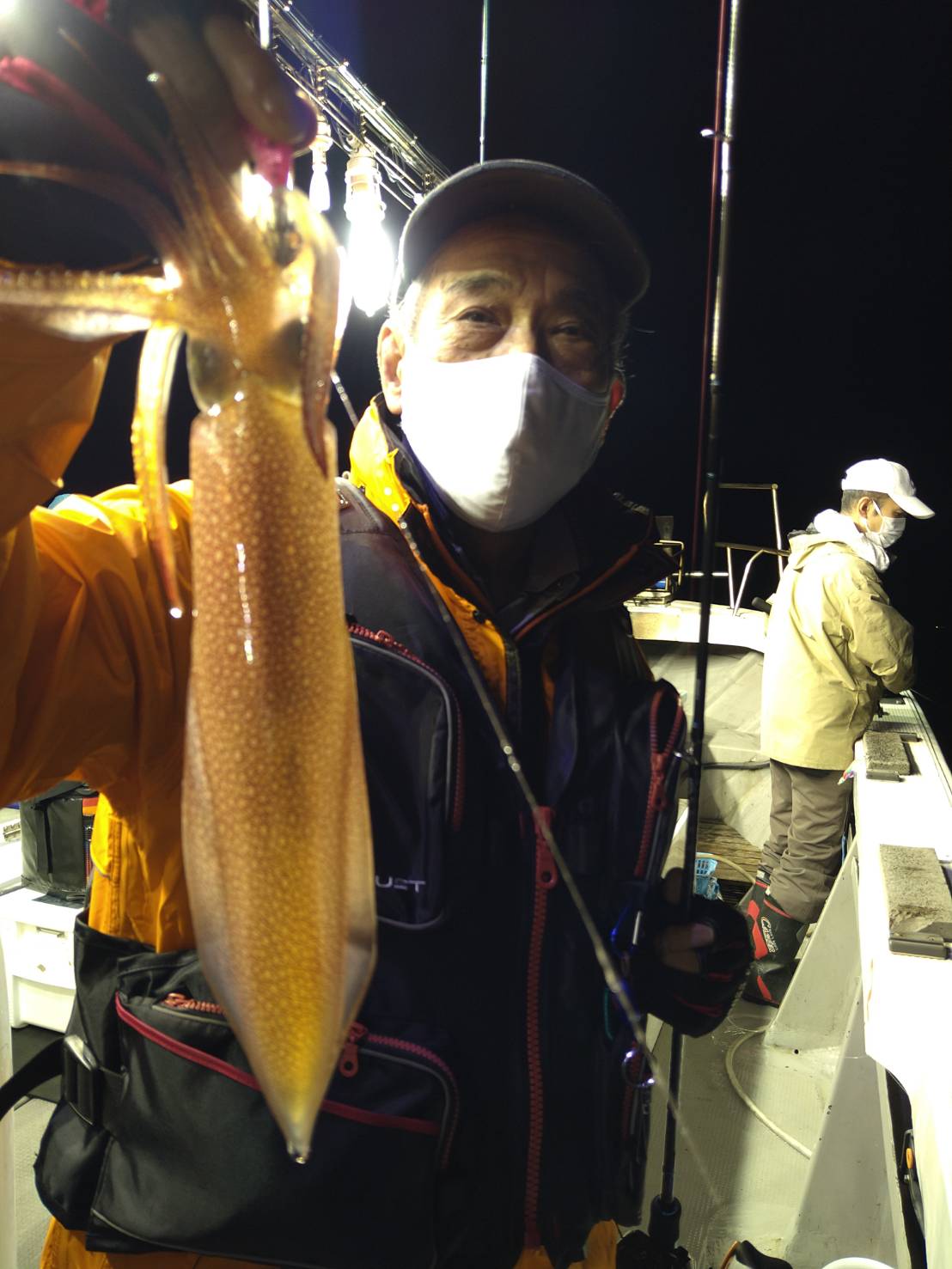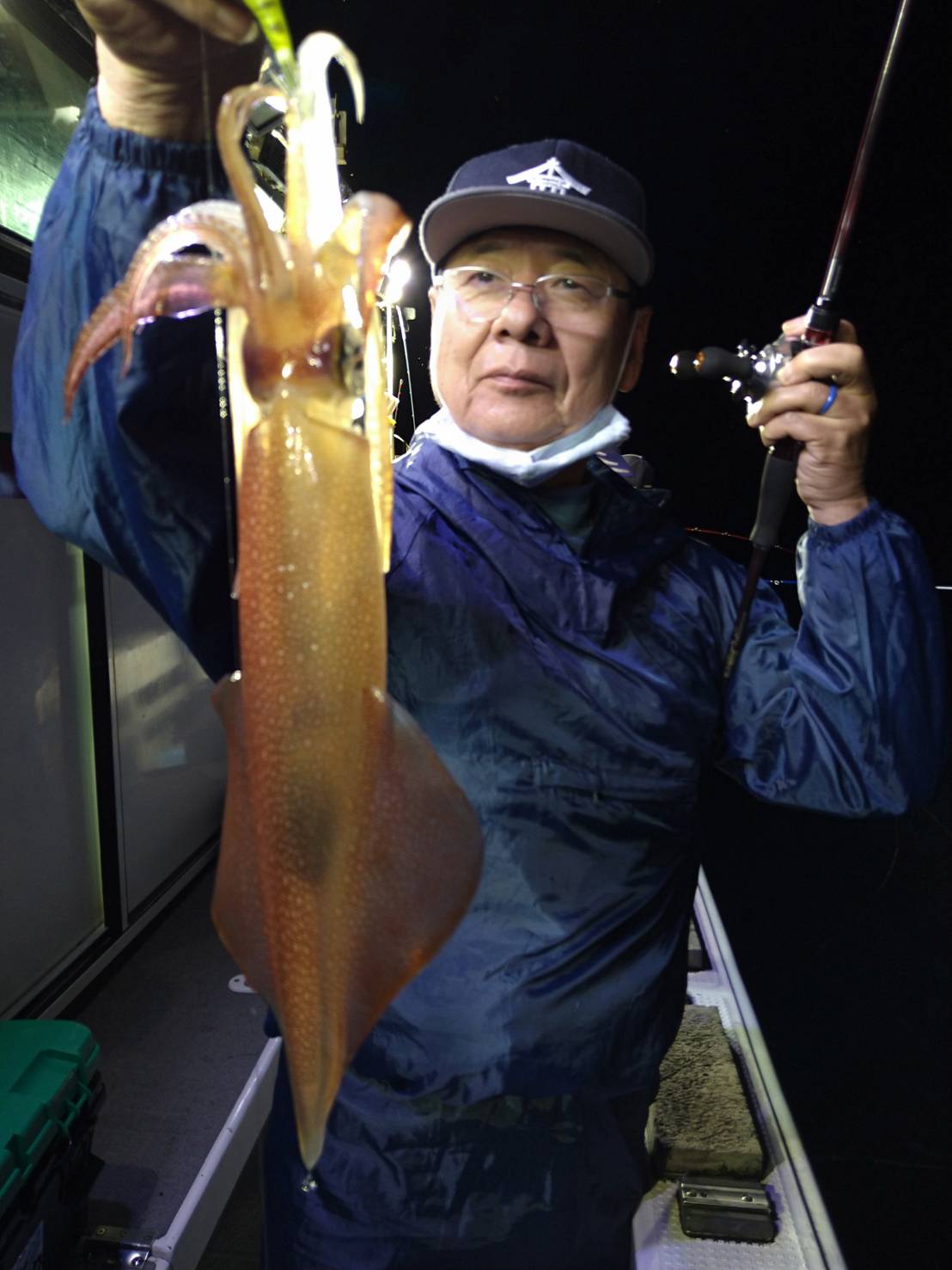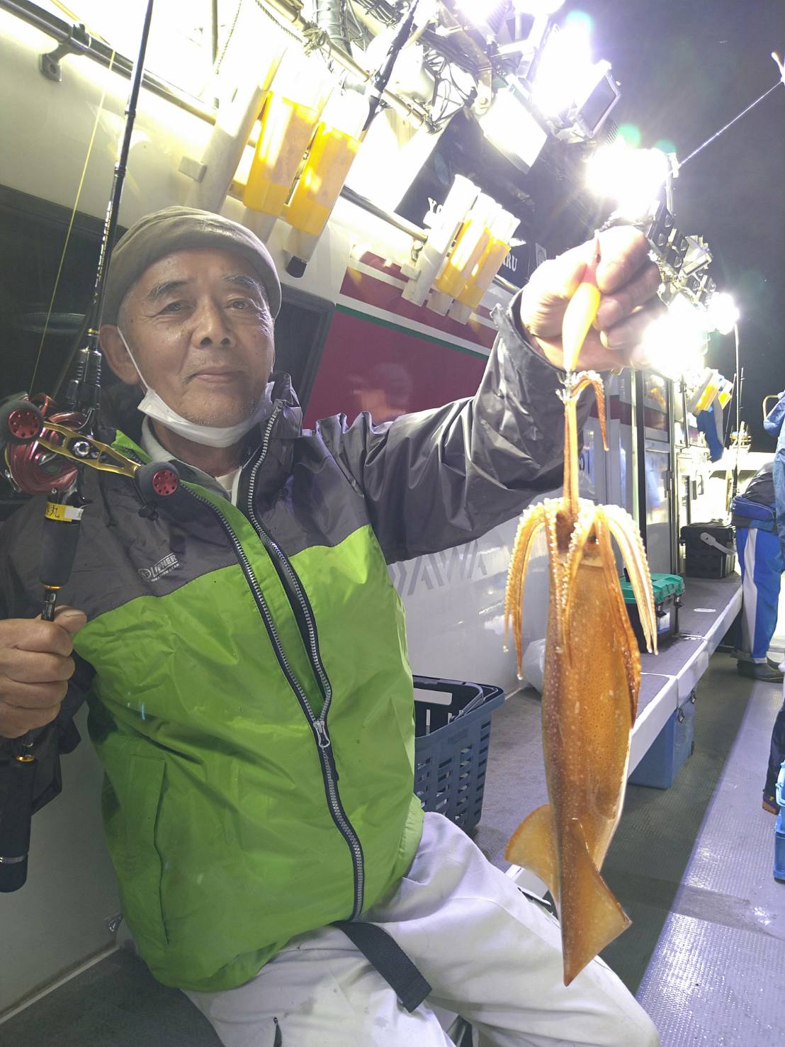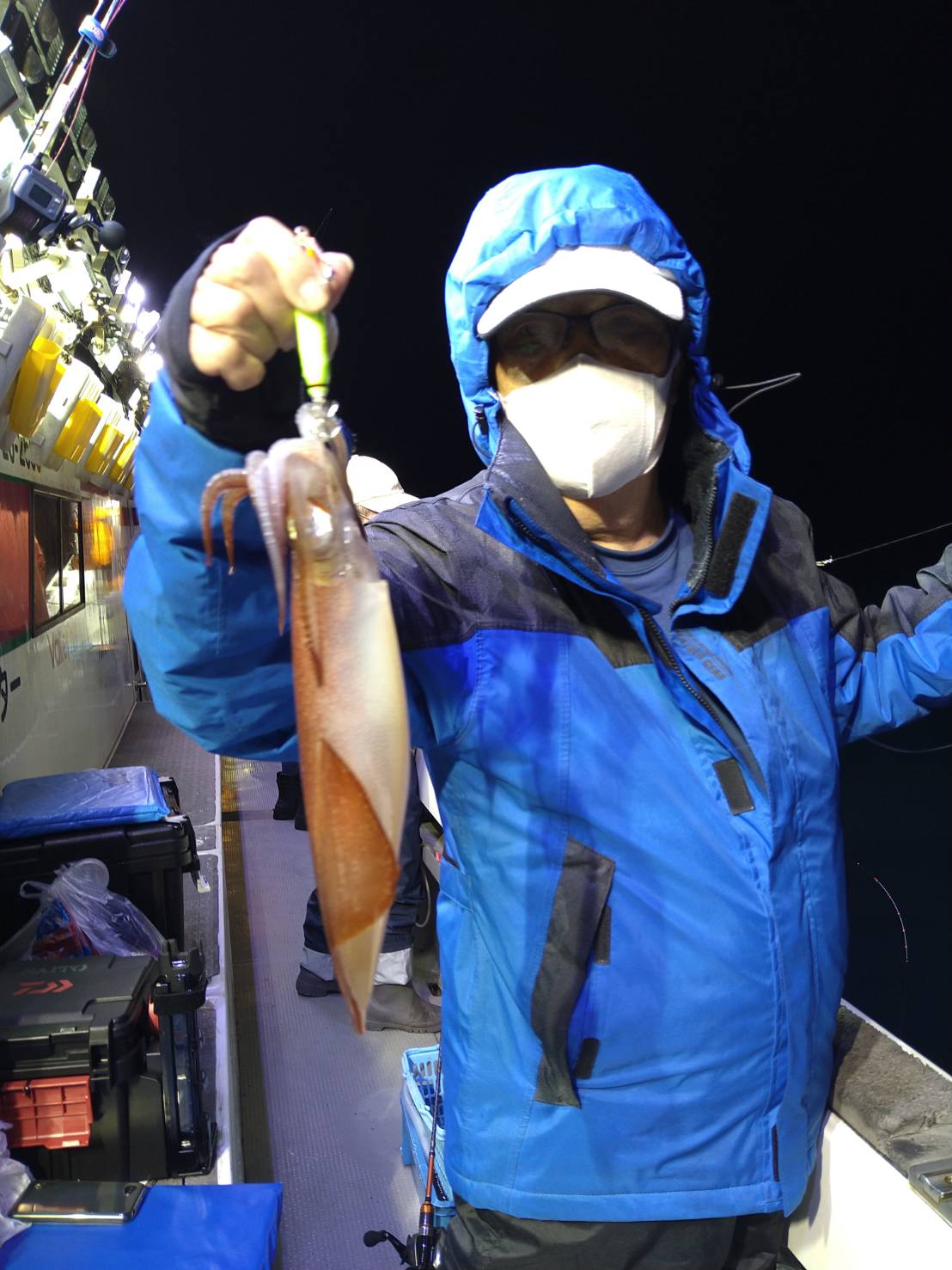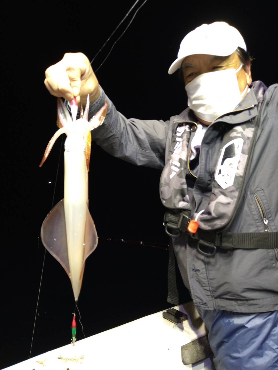 今日は点灯してからポツポツと最近にしてはいい感じでした♪潮もなくカカリ釣り。棚が深いのでやはりたま〜におまつりありです。なかなか活性は上がらないので個人差出ますね〜。その日のラッキーカラーもあります(^ー^) 今日は、オレンジ、ピンク系が良かったです(^^)d マイカ竿頭浅野さん19ハイ、橋本さん、野村さん同数17ハイ、清水さん16パイの良型でした(*^▽^*) 計10パイ超え7名とスルメも良く釣れてました★良かったです\(^-^)/本日は福井美浜米春丸にご乗船下さいまして誠にありがとうございましたm(_ _)m