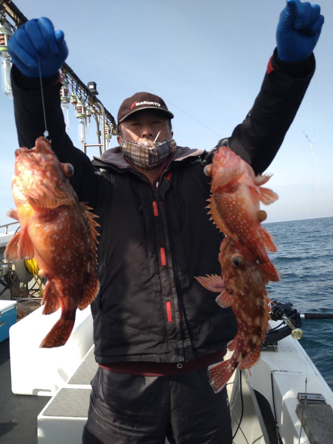 今日も潮がなくあたりが渋かったです(。>д<)それでも根気良く手持ちで頑張ってくれました(^^)d 良型のオニカサゴ、良型のカサゴ混じりでポツポツと釣ってくれました♪個人差はあるものの多い方は20匹以上釣られてましたよd=(^o^)=b 欲をいえば、他にいろんな魚が釣れるもっといいのですがね〜。でも、カサゴや、オニカサゴは、人気があり、しかも美味しいので、有難いことです★ 本日は福井美浜米春丸にご乗船下さいまして誠にありがとうございましたm(_ _)m